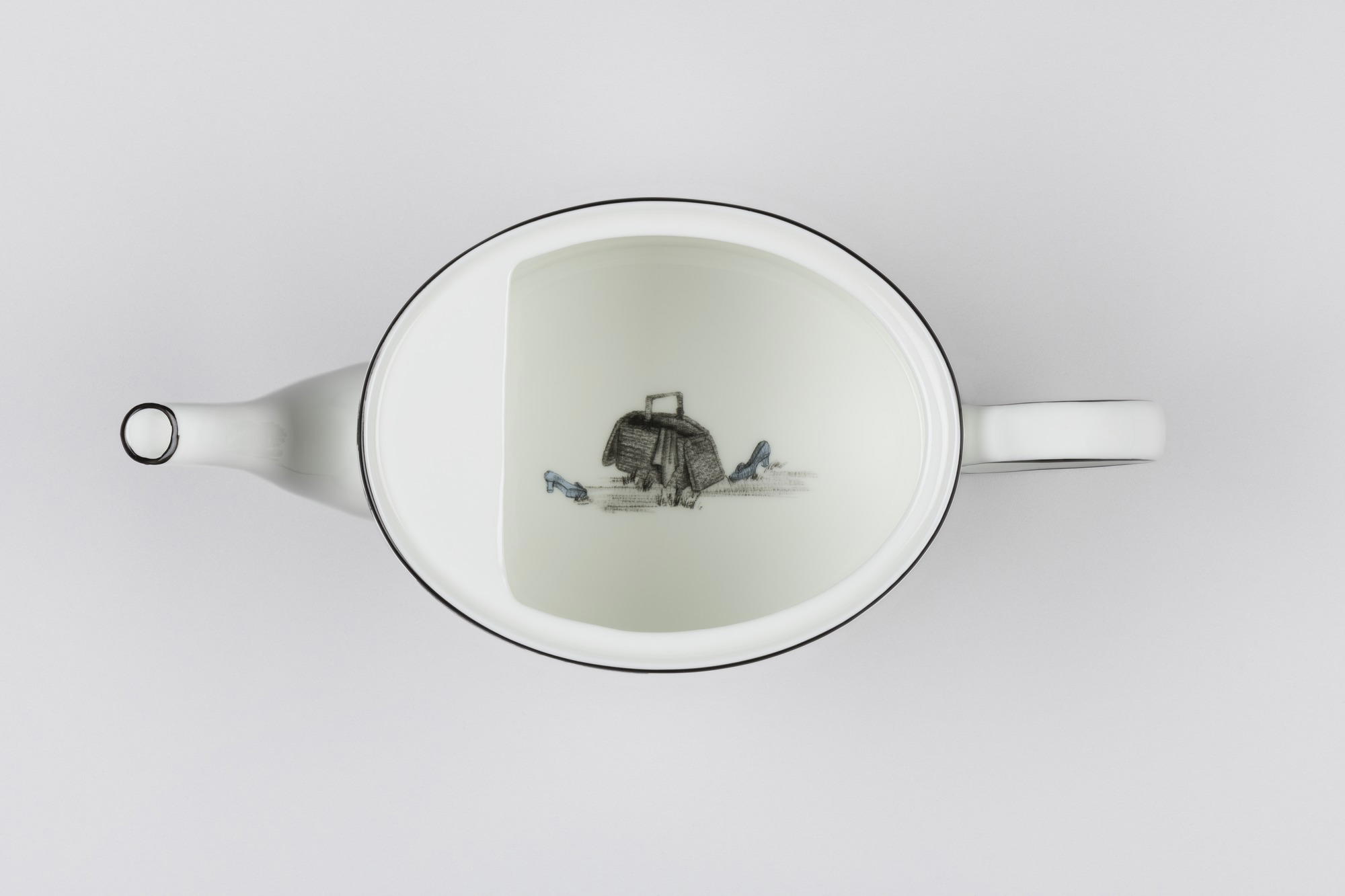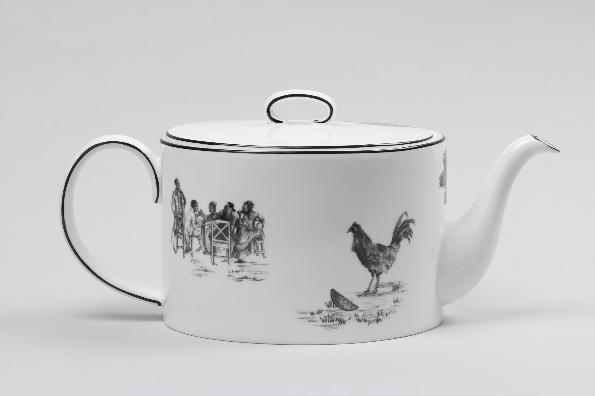 Sheila Bridges (American, born 1964). Picnic Teapot, designed 2022; manufactured 2023. Bone china, 3 13/16 × 4 5/8 × 10 1/4 in. (9.7 × 11.7 × 26 cm). Brooklyn Museum, Gift of Wedgwood© Fiskars UK Limited, 2023.34.6a-b. (Photo: Brooklyn Museum)