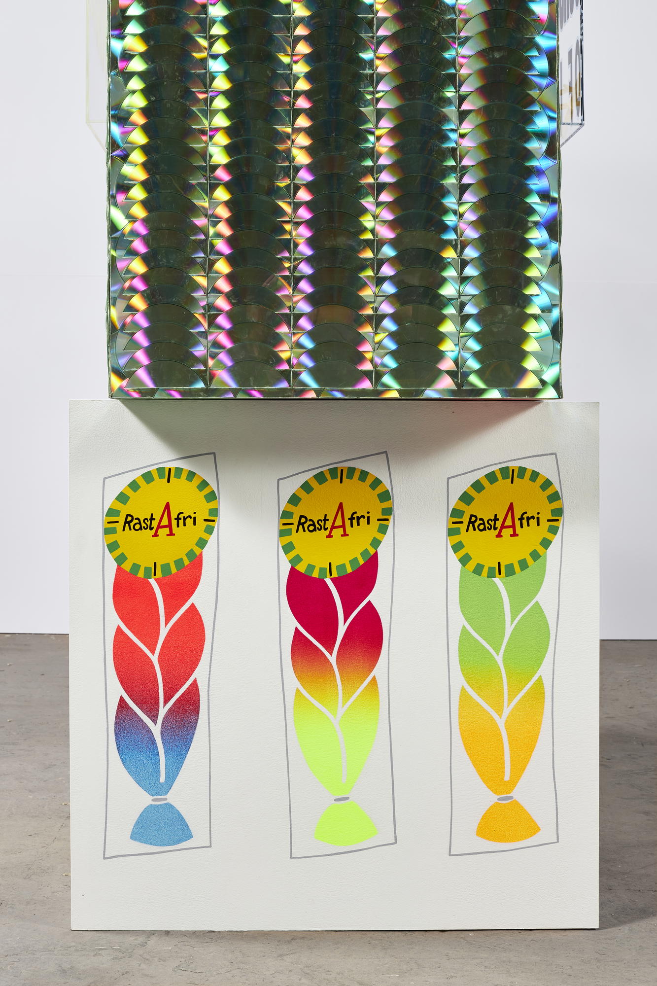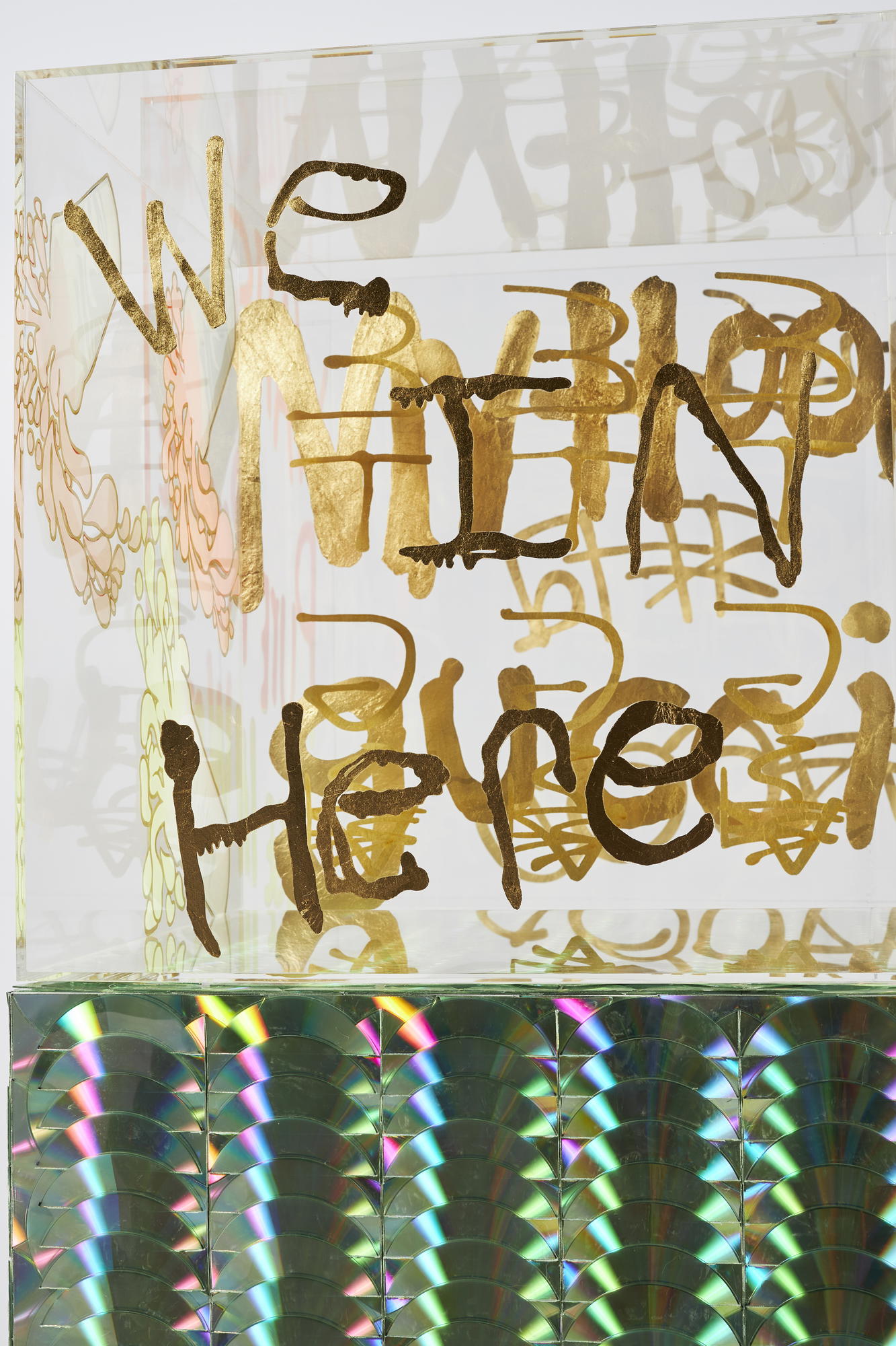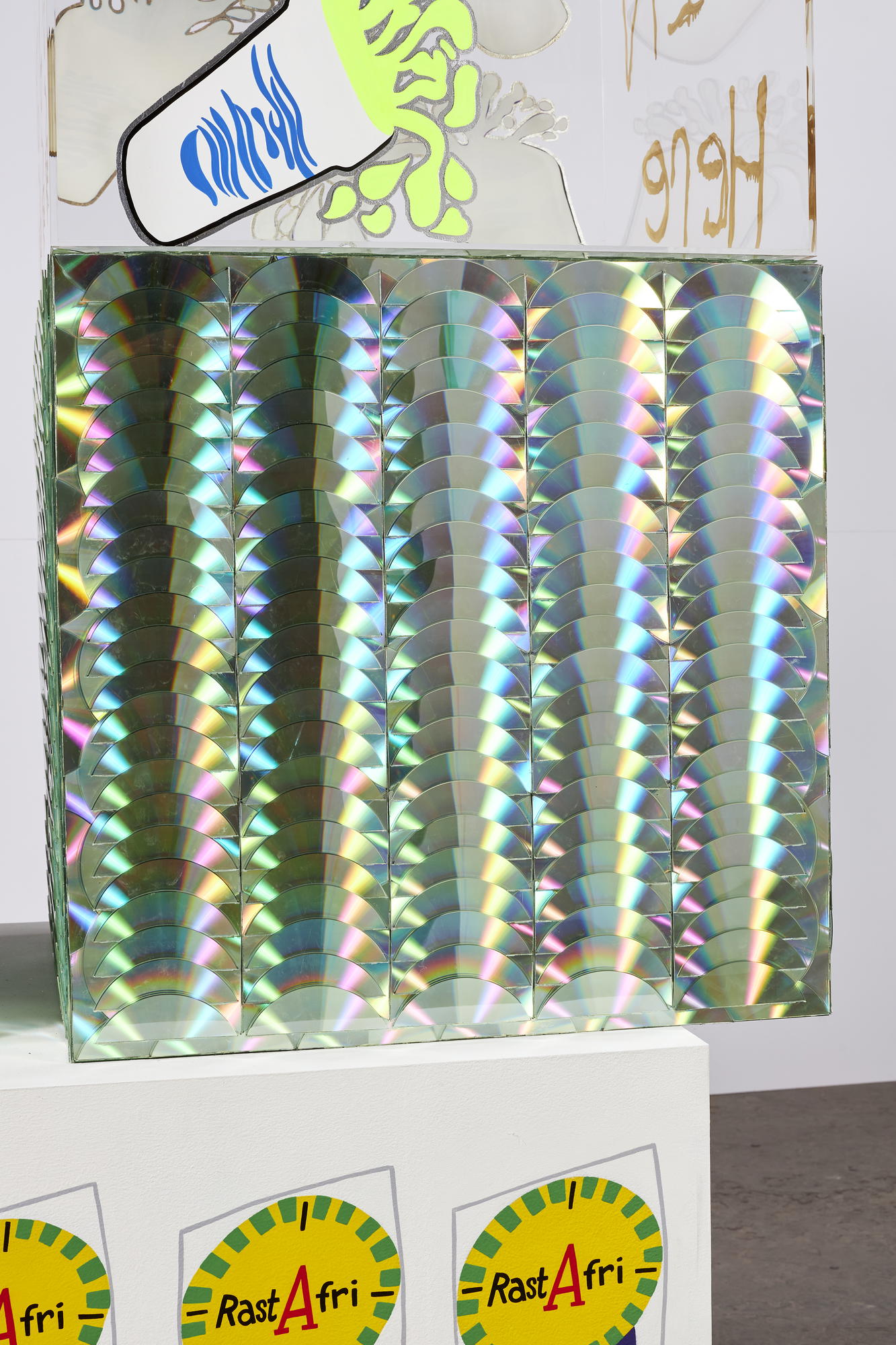 Acrylic, enamel, and CDs on acrylic and wood