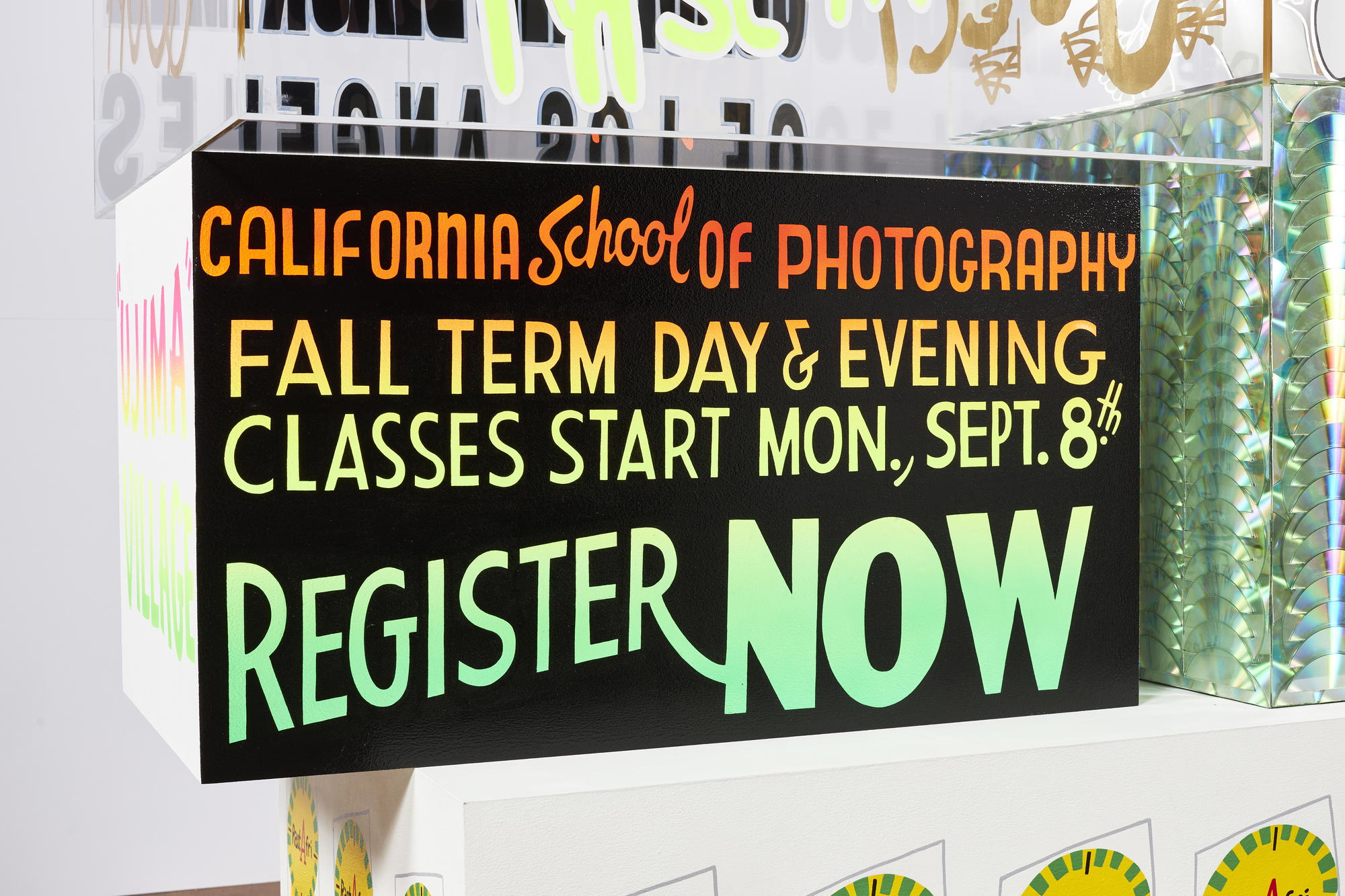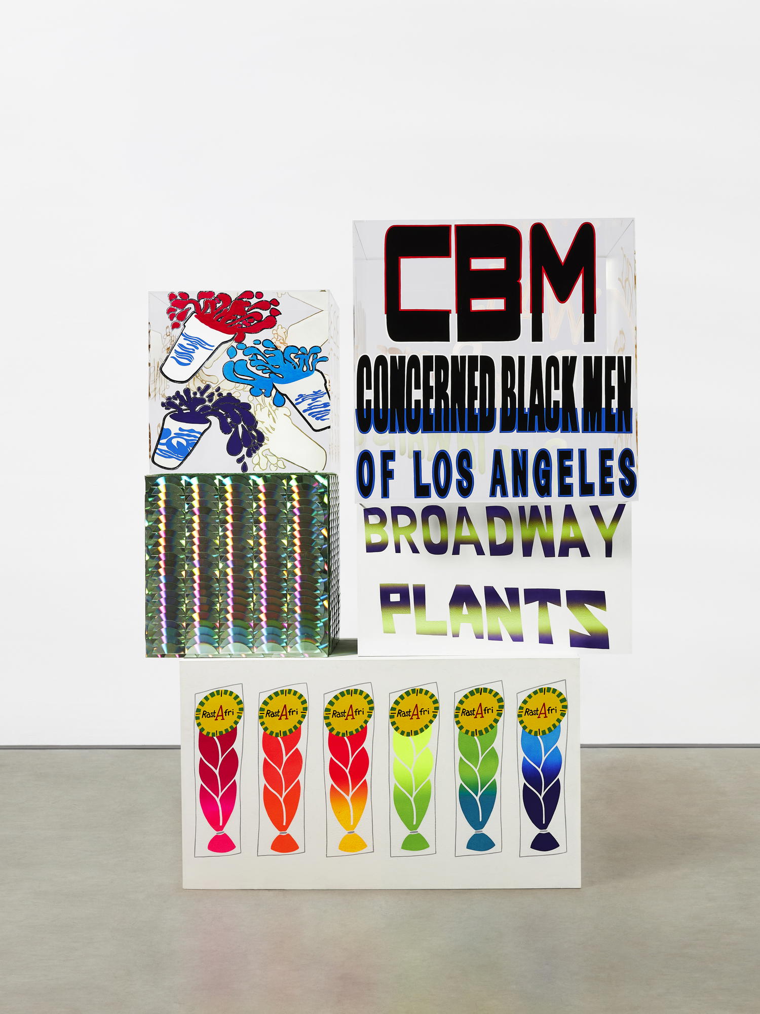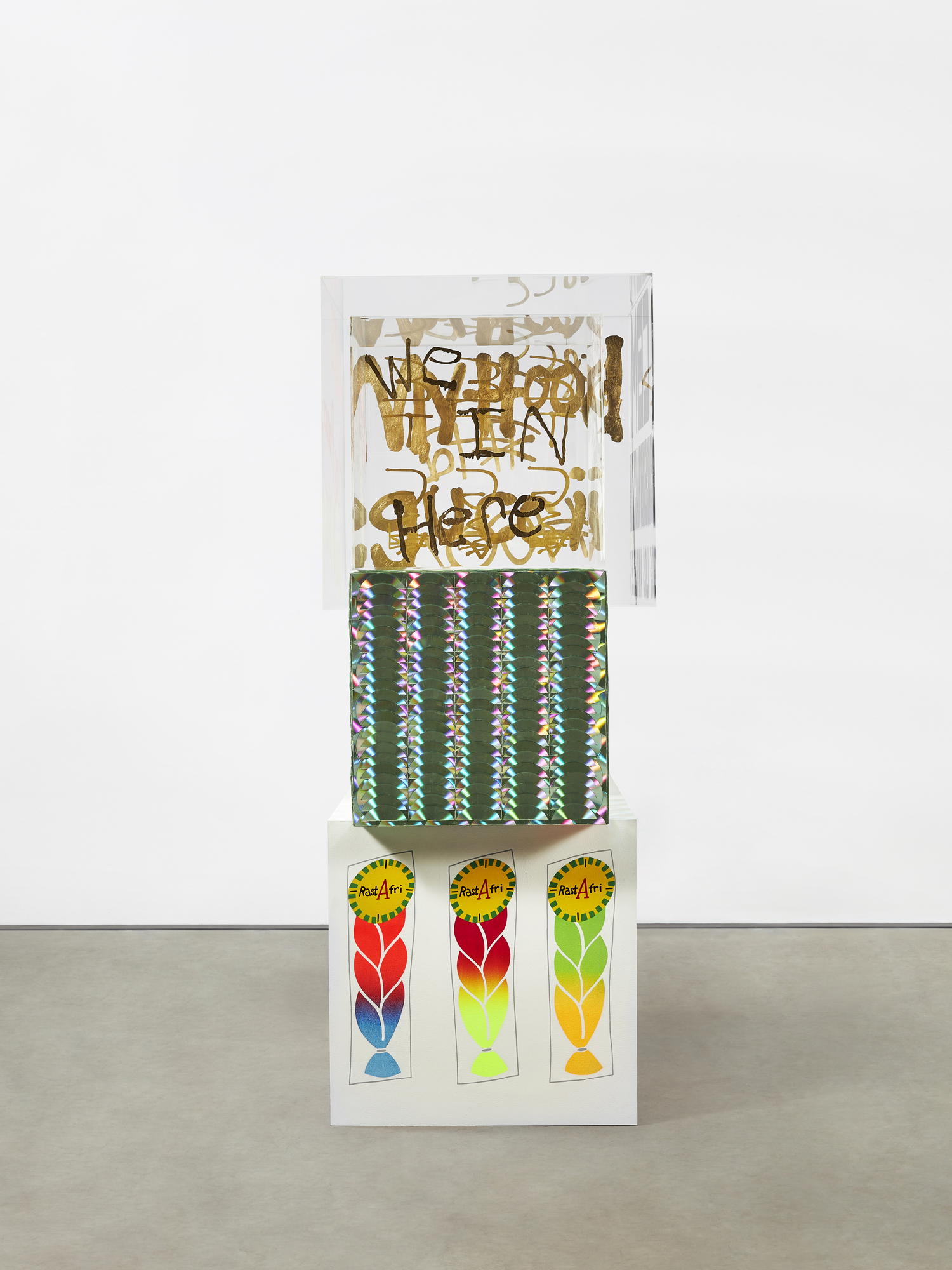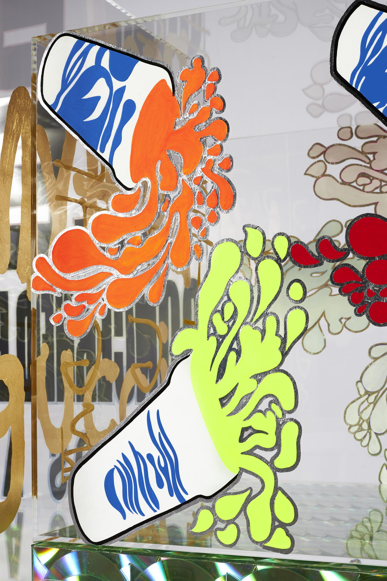Acrylic, enamel, and CDs on acrylic and wood