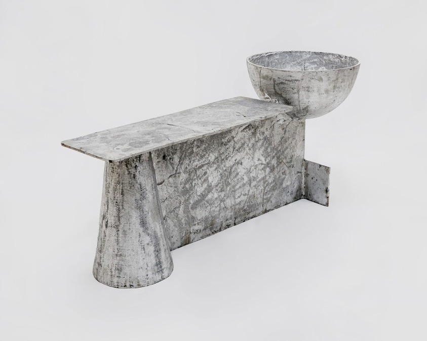 Nifemi Marcus-Bello (Nigerian, born 1988). Tales of Moonlight Bench with Bowl, 2023. Recycled sand-cast aluminum, 44 1/8 × 15 11/16 × 20 1/8 in. (112 × 39.9 × 51.1 cm). Brooklyn Museum, Marie Bernice Bitzer Fund, 2025.6. (Photo: Courtesy of VERSO)