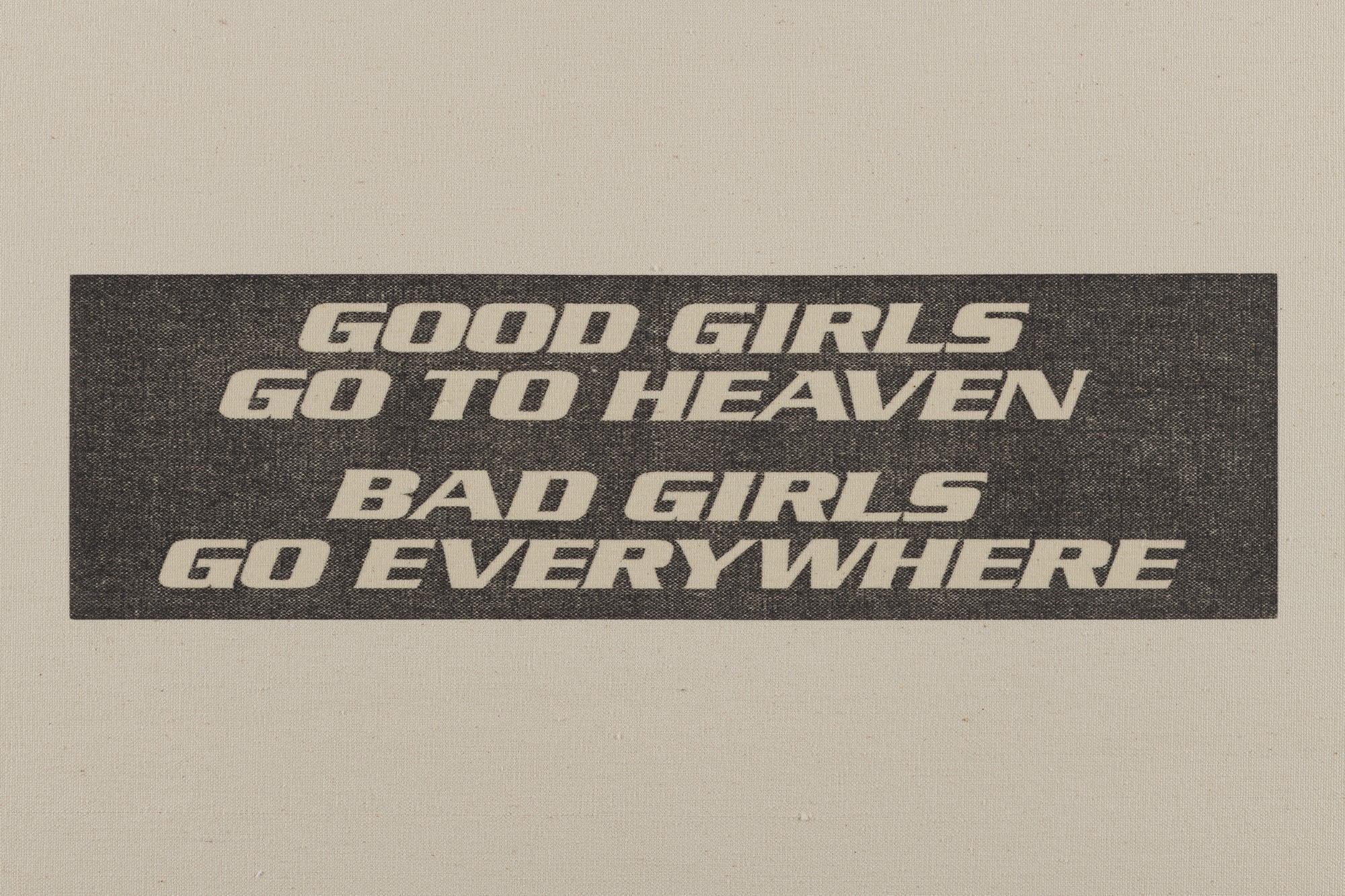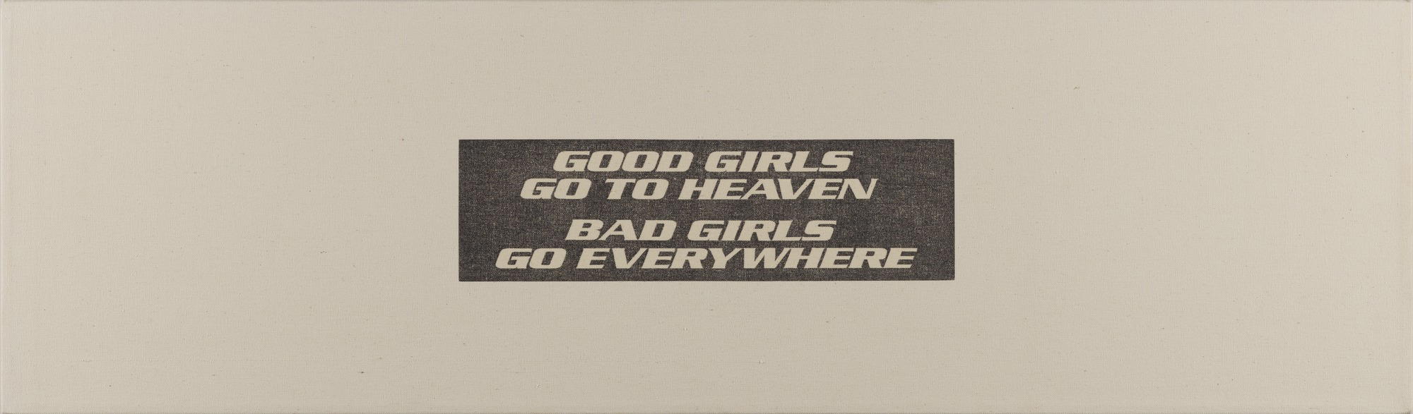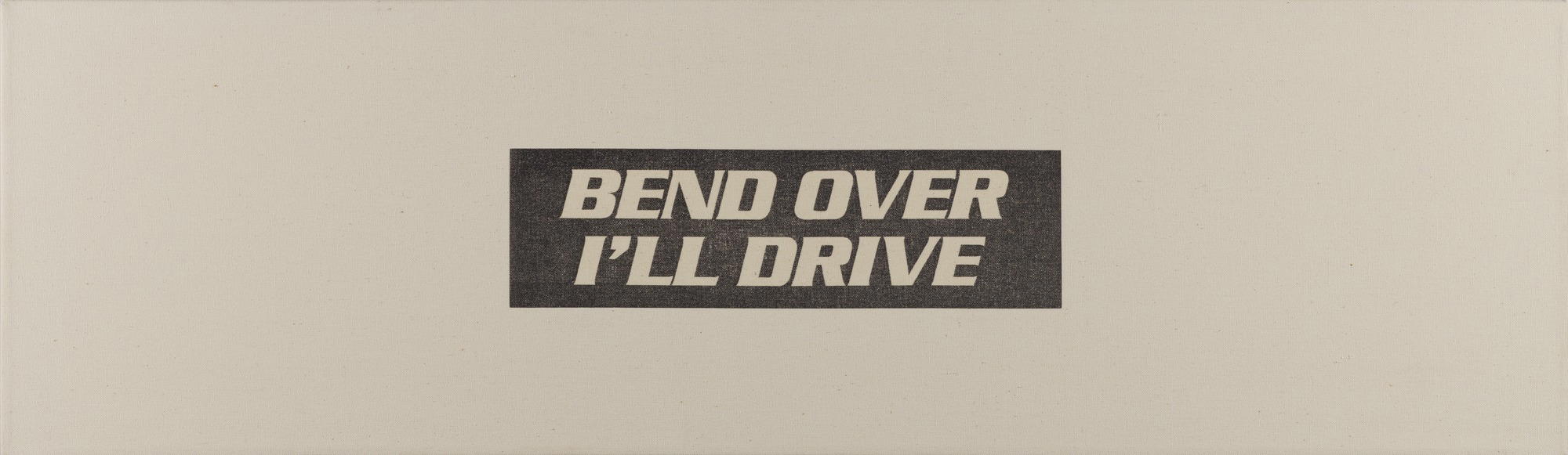 Marlene McCarty (American, born 1957). Bend over, I'll drive - Bad girls (in 2 parts), 1990. Stencil on canvas, two canvasses, 11 1/4 × 38 × 1 1/2 in. (28.6 × 96.5 × 3.8 cm) each canvas. Brooklyn Museum, Gift of Richard Gerrig and Timothy Peterson, 2025.16.1a-b. © Marlene McCarty. (Photo: Brooklyn Museum)