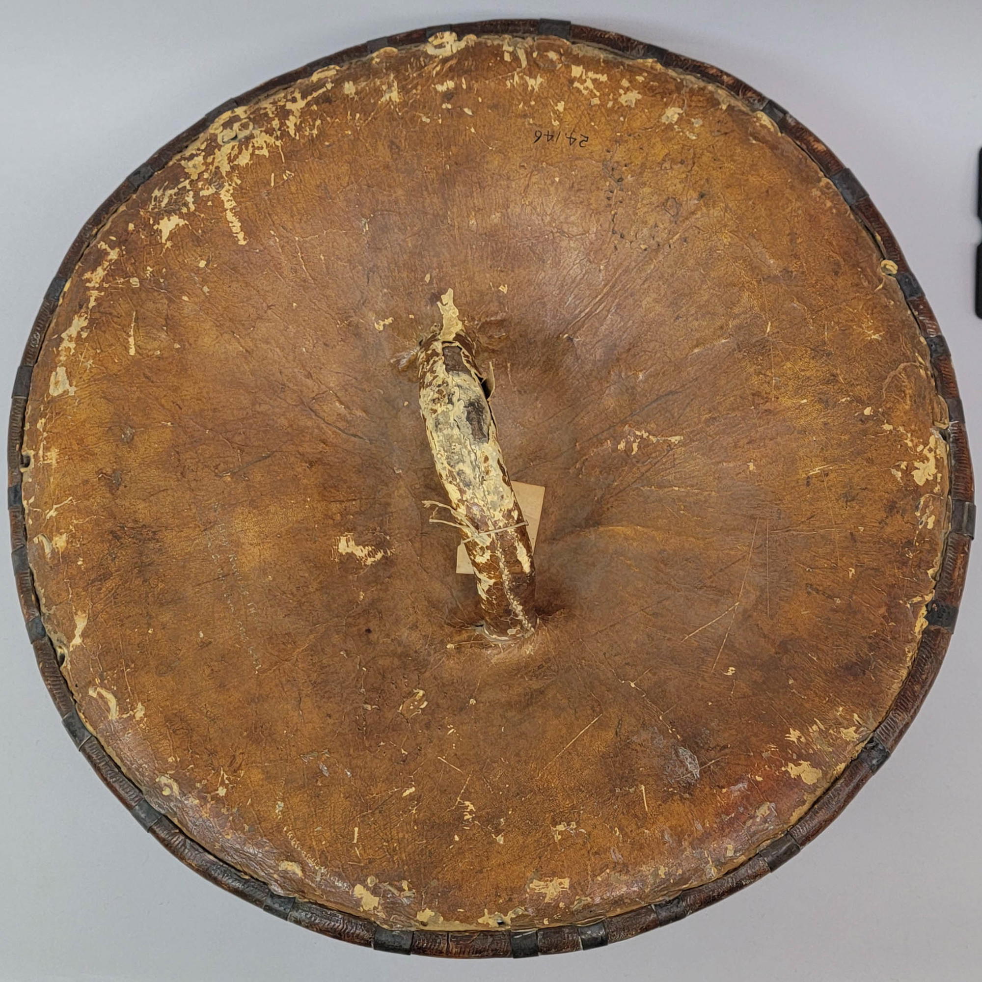 Amhara. Shield, 19th century. Rhinoceros, hippopotamus or buffalo hide, iron, copper alloy, 21 3/4 x 6 3/4 in. (diam.: 55.0 cm depth: 17.0 cm). Brooklyn Museum, Museum Expedition 1922, Robert B. Woodward Memorial Fund, 24.146. (Photo: Brooklyn Museum)