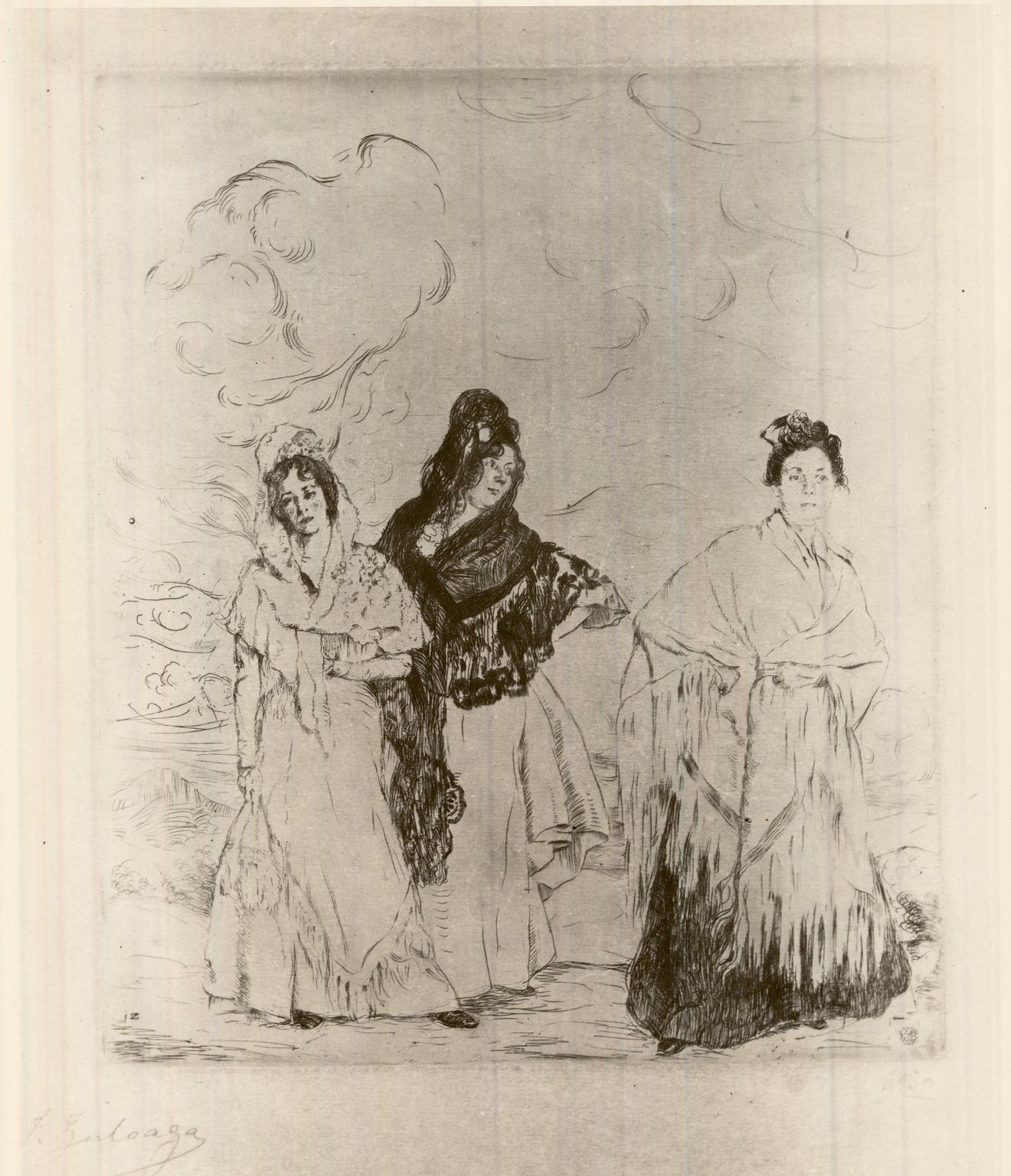 Ignacio Zuloaga y Zabaleta (Spanish, 1870–1945). Three Spanish Women, Etching on heavy Japan paper, 8 7/8 x 8 1/4 in. (22.5 x 21 cm). Brooklyn Museum, Museum Collection Fund, 24.379. (Photo: Brooklyn Museum)