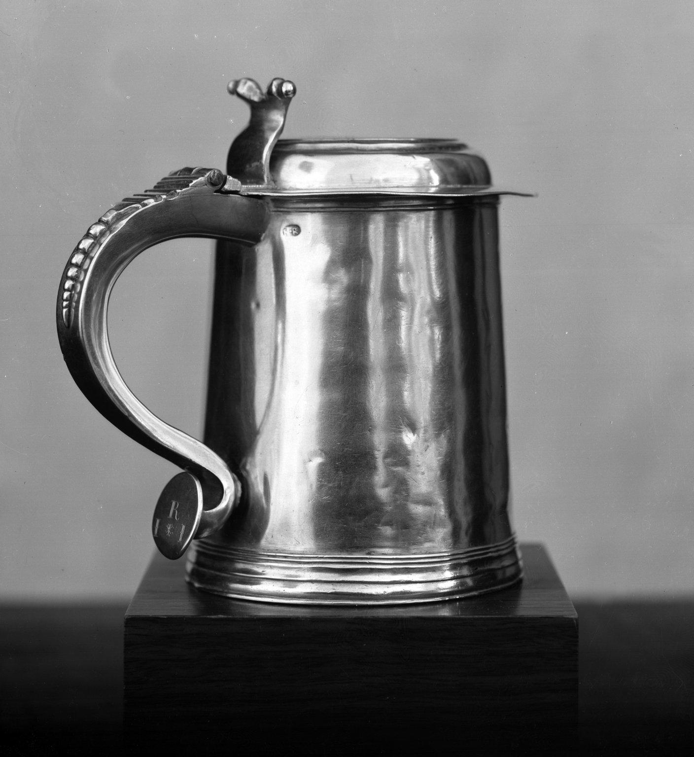 Large tankards were used as communal drinking vessels in the seventeenth and eighteenth centuries. Those made of silver, such as this one, were particularly valued because silver was the coin of the realm and an indication of personal wealth.