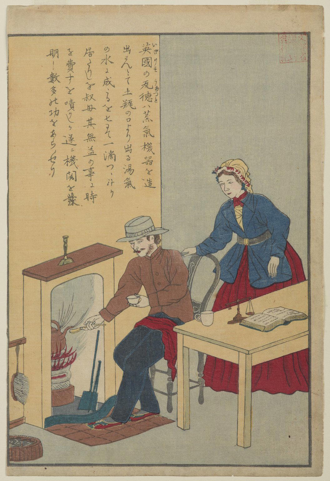 Unknown Artist. James Watt, from the series Lives of Great People of the Occident, ca. 1870. Color woodblock print on paper, 14 1/4 x 9 1/2 in. (36.2 x 24.1 cm). Brooklyn Museum, Estate of Stewart Culin, Museum Purchase, 30.674.