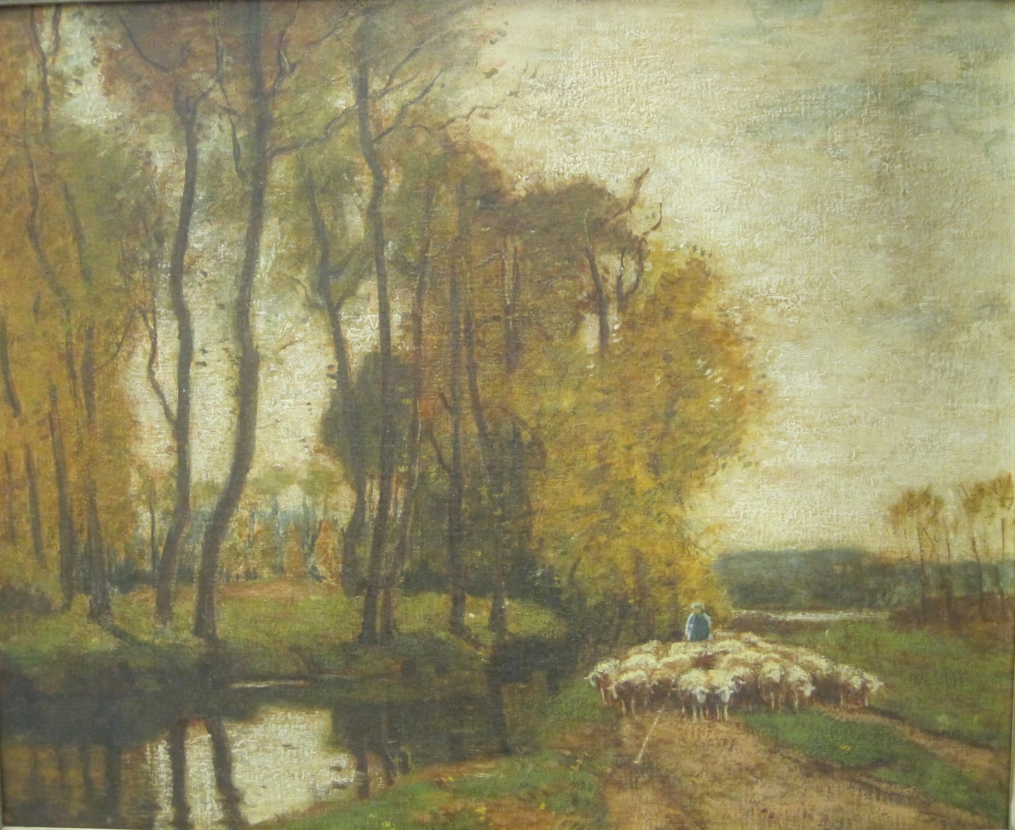 Louis Paul Dessar (American, 1867–1952). Landscape with Sheep, ca.1905–1920. Oil on canvas, 19 3/4 x 24 in. (50.2 x 61 cm) frame: 24 1/2 × 29 × 2 1/2 in. (62.2 × 73.7 × 6.4 cm). Brooklyn Museum, Bequest of Clara L. Obrig, 31.199. (Photo: Brooklyn Museum)