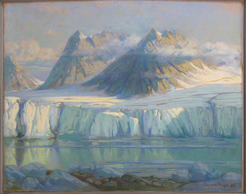 Hans W. Meyer (American). Gully Glacier, Magdalena Bay, Spitzbergen, 1928. Pastel on paperboard, image: 27 3/8 x 33 7/16 in. (69.5 x 85 cm) frame: 31 11/16 x 37 3/8 in. (80.5 x 95 cm) storage (object housing): 37 1/8 × 31 × 2 in. (94.3 × 78.7 × 5.1 cm). Brooklyn Museum, Gift of a group of students of Packer Collegiate Institute, 32.102. (Photo: Brooklyn Museum)
