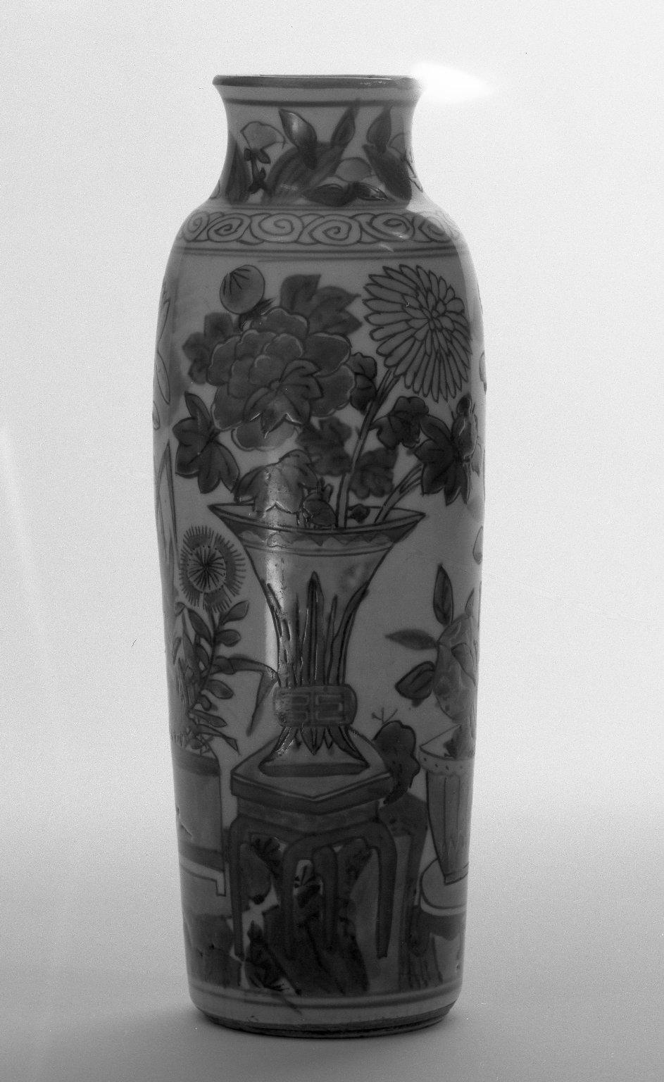 Tubular Vase, second half 16th century. Porcelain, overglaze enamels, 9 7/16 x 3 1/8 in. (23.9 x 8 cm). Brooklyn Museum, Gift of the executors of the Estate of Colonel Michael Friedsam, 32.1104. (Photo: Brooklyn Museum)