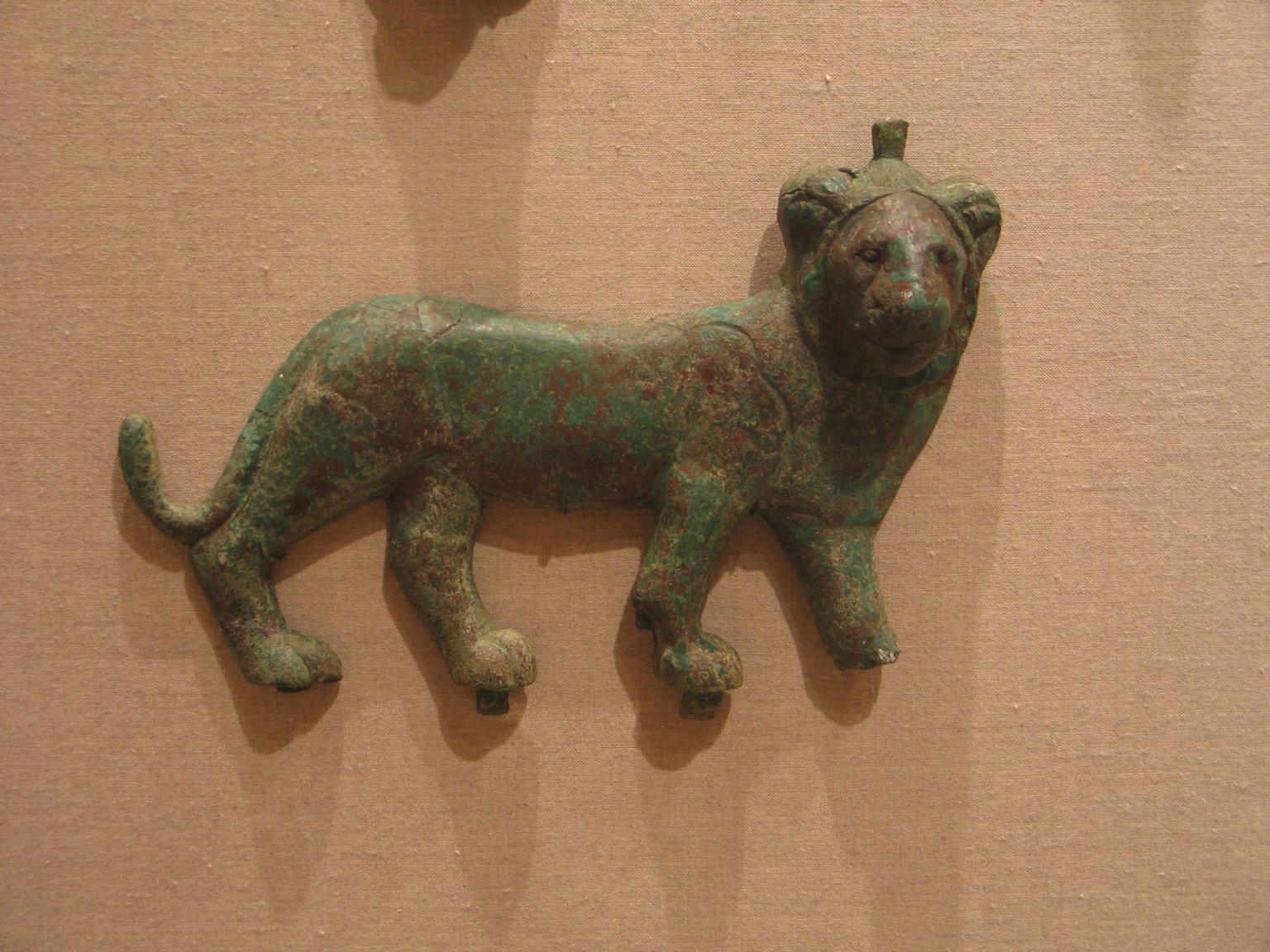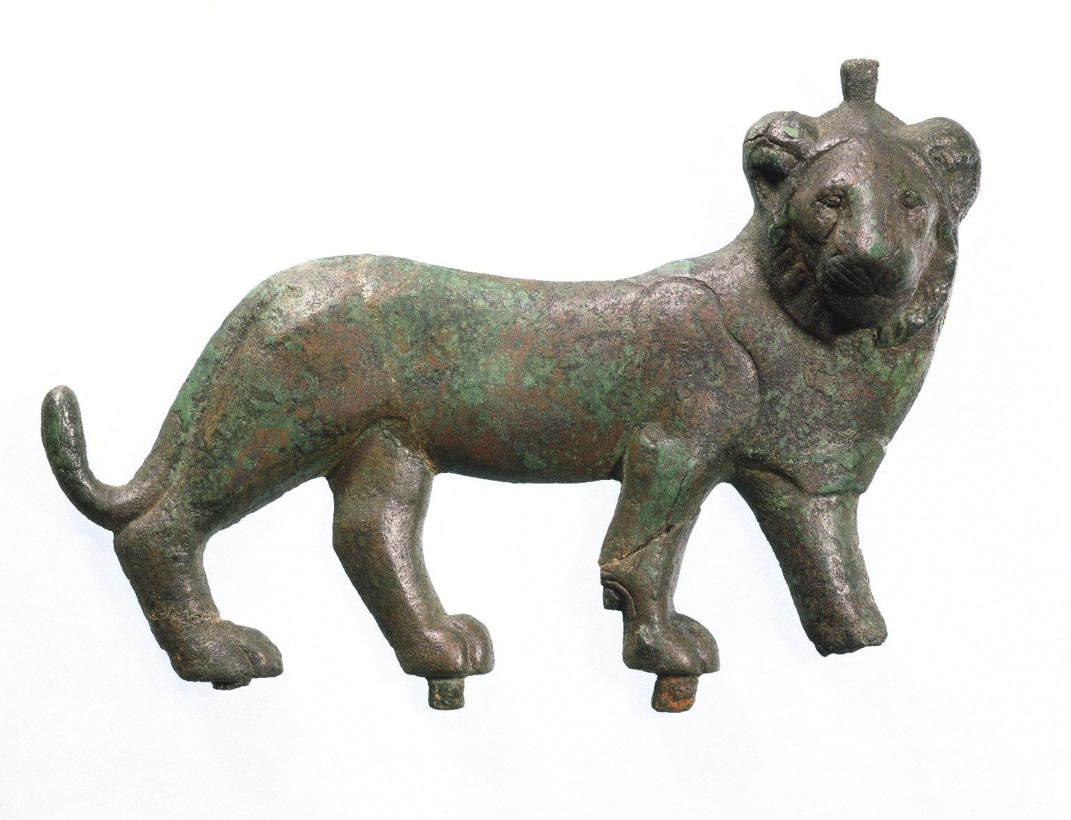 Lion Applique, 4th–3rd century B.C.E.. Bronze, 5 13/16 x 8 1/4 in. (14.7 x 21 cm). Brooklyn Museum, Charles Edwin Wilbour Fund, 55.177. (Photo: Brooklyn Museum)