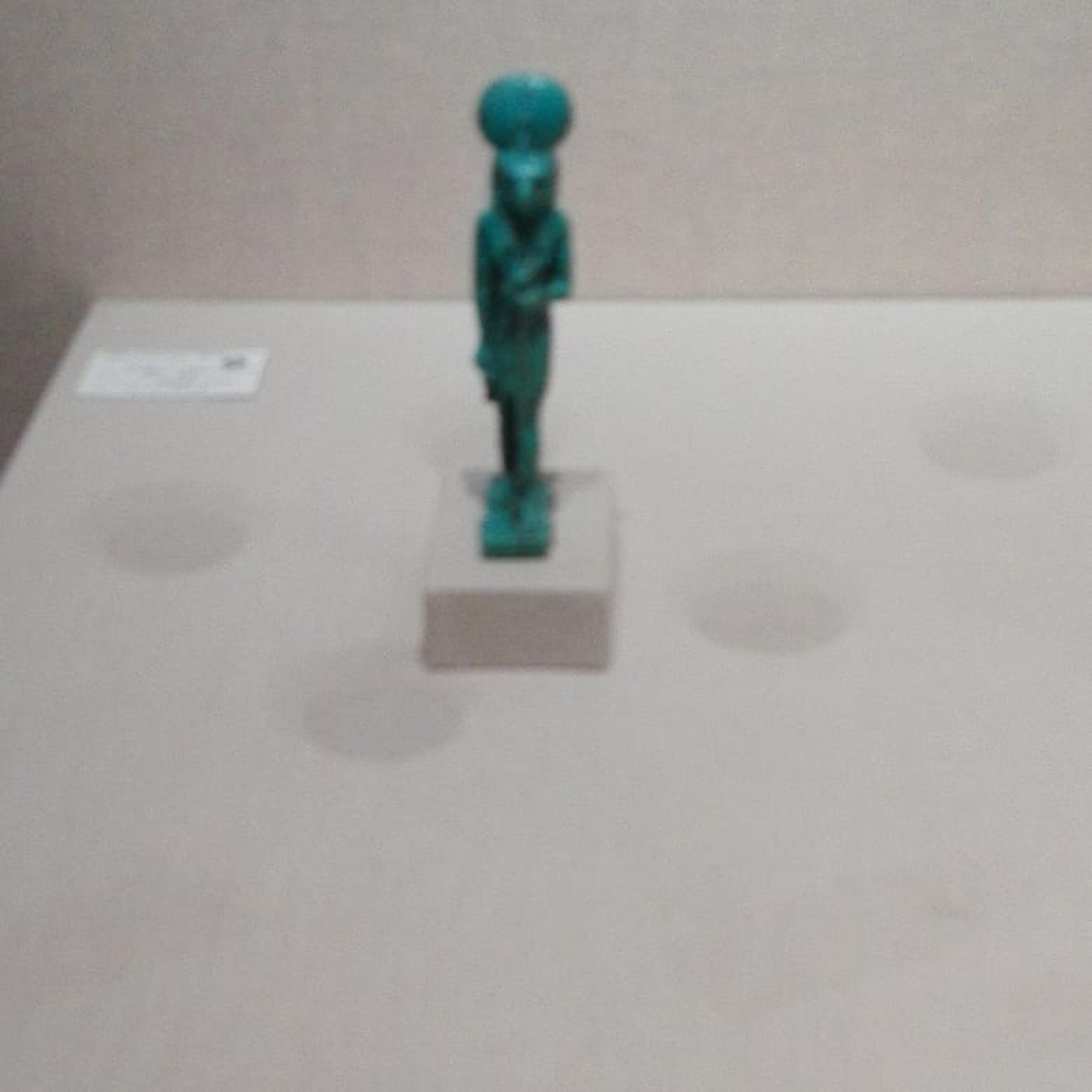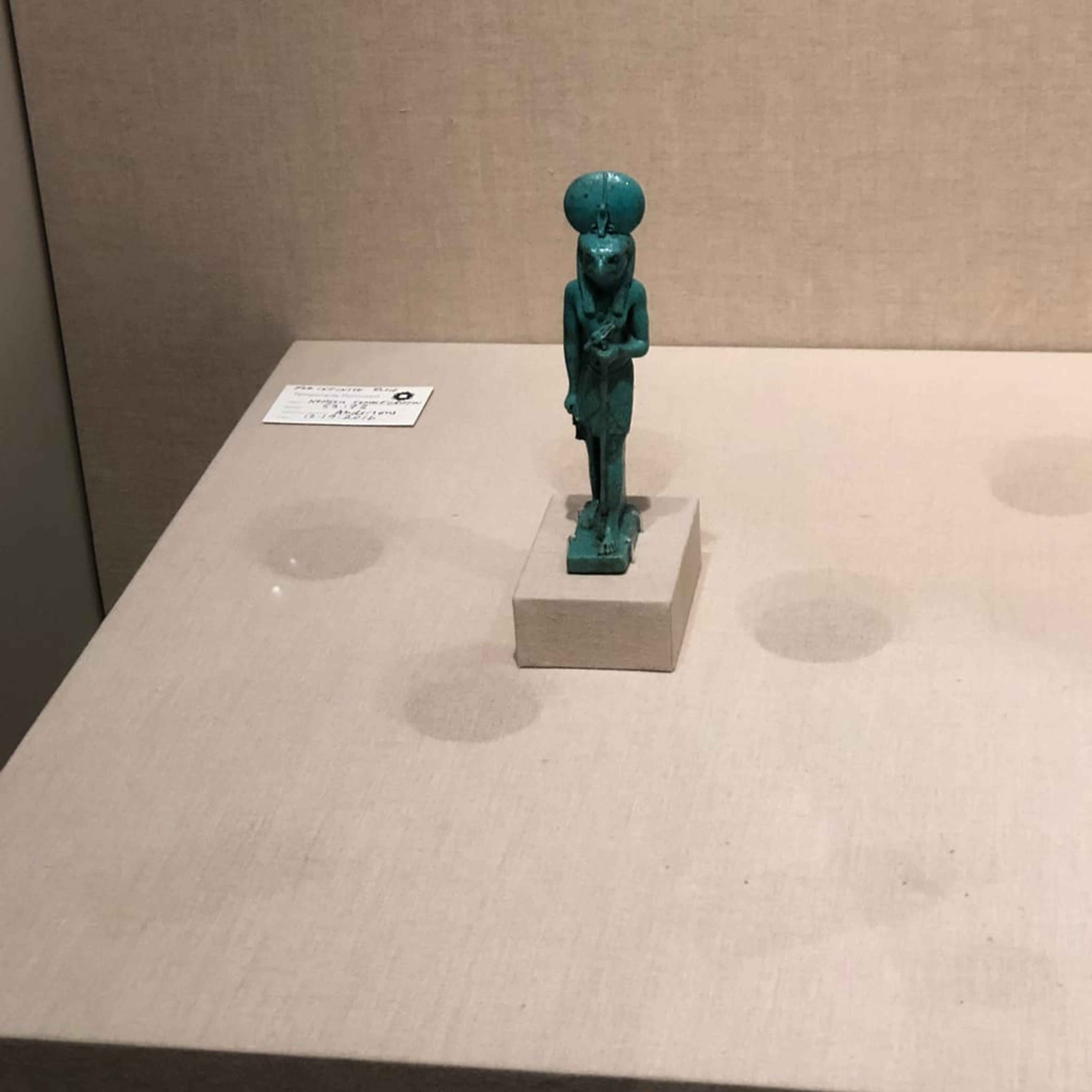 Esta figurilla es la deidad Re-Horakhty, una forma de la deidad Horus. Horakhty significa "Horus de los dos horizontes." Estaba asociado con los ciclos del sol.
