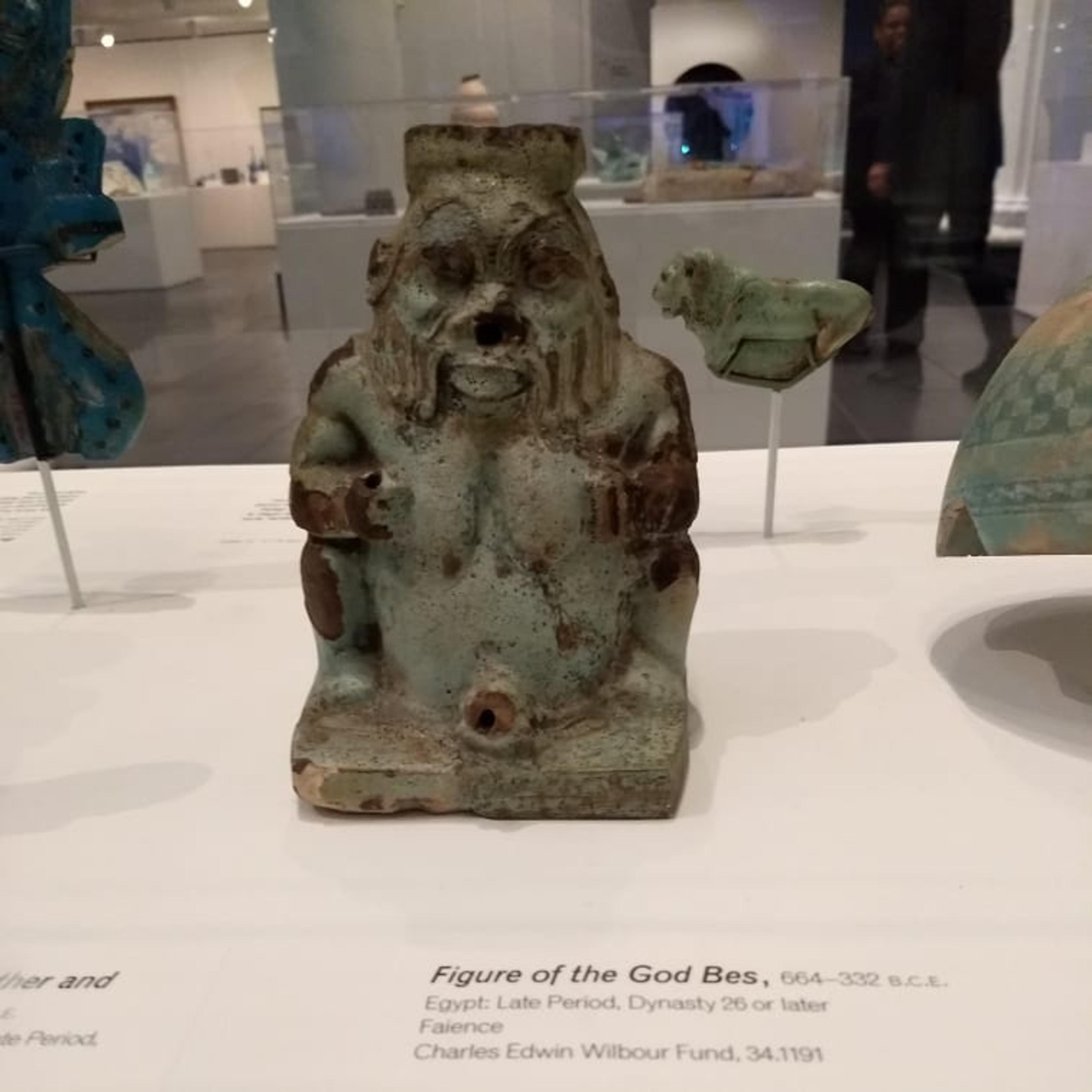 Bes was worshipped in ancient Egypt as the protector of households, mothers and children, and childbirth. Images of Bes were kept in the home. He was meant to look as off-putting as possible in order to scare away demons from the house!It's very nice!I think so too! I love the deep blue of faience. The ancient Egyptian word for faience meant "brilliant" or "dazzling". Faience was an affordable alternative to the more expensive lapis lazuli. The color blue was also symbolic to the Egyptians, who associated the color with the life-giving waters of the Nile River.Was God Bes actually GodESS Bes?