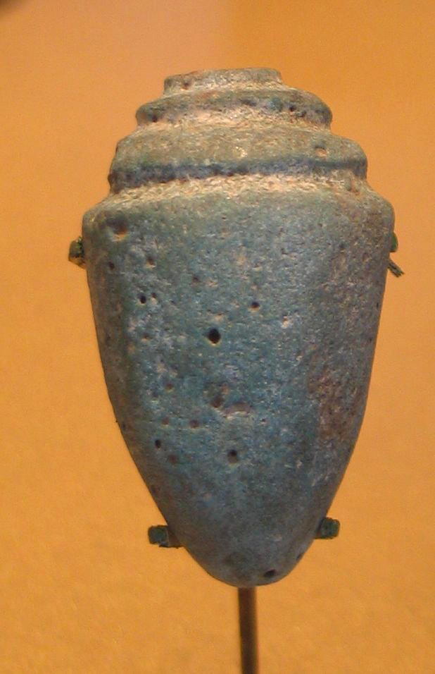 The Egyptians believed they would need food and drink in the afterlife. Early Dynasty 12 burials commonly included large wooden models depicting offering bearers or people engaged in activities such as baking bread and brewing beer. Later, under Senwosret III, the large wooden models were replaced by small-scale replicas of food. These faience shells probably represented a variety of Red Sea snail, an ancient delicacy.