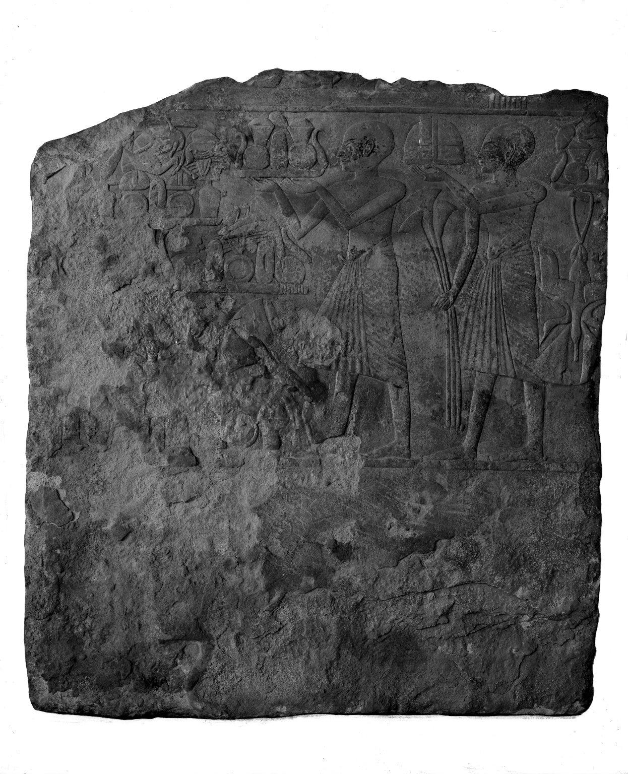 Offering Bearers, ca. 1323–1250 B.C.E.. Limestone, pigment, 15 7/8 x 19 1/8 in. (40.3 x 48.5 cm). Brooklyn Museum, Charles Edwin Wilbour Fund, 37.1505E. (Photo: Brooklyn Museum)