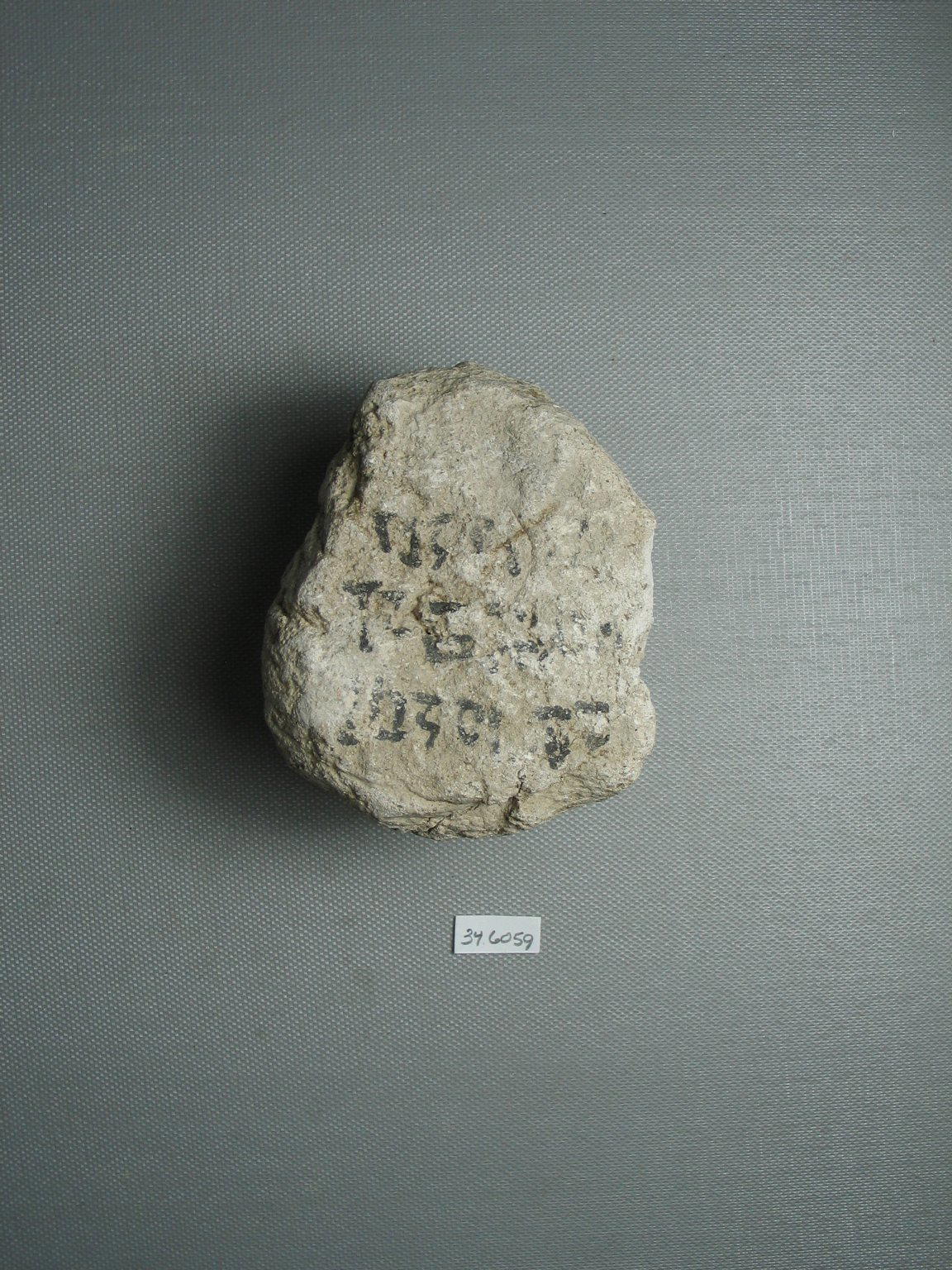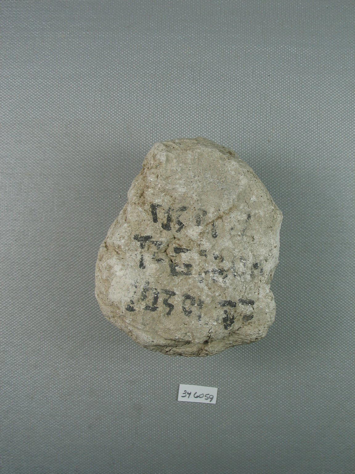 Small Lump of Plaster with Black Ink Inscription, ca. 1352–1336 B.C.E.. Plaster, pigment, 2 7/8 x 2 1/16 x 3 1/2 in. (7.3 x 5.2 x 8.9 cm). Brooklyn Museum, Gift of the Egypt Exploration Society, 34.6059. (Photo: Brooklyn Museum)