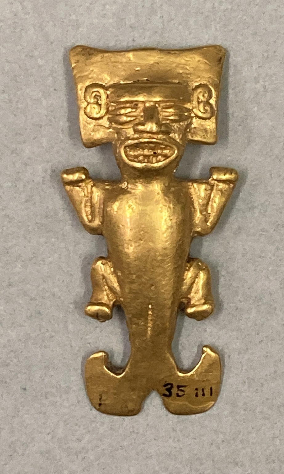 Human Effigy Pendant, Gold, 11/16 × 1/4 × 1 11/16 in. (1.7 × 0.6 × 4.3 cm). Brooklyn Museum, Alfred W. Jenkins Fund, 35.111. (Photo: Brooklyn Museum)