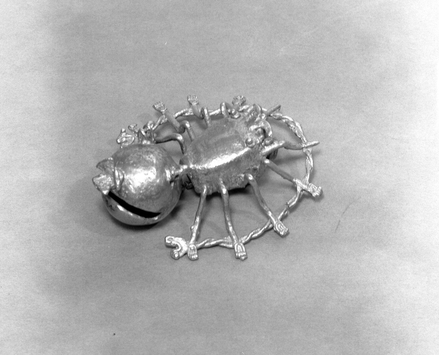 I don't believe that we have had them tested. Some of the objects such as the Lime Container are actually gold alloys, while others such as the spider are just listed as gold.What's this spider pendant about?