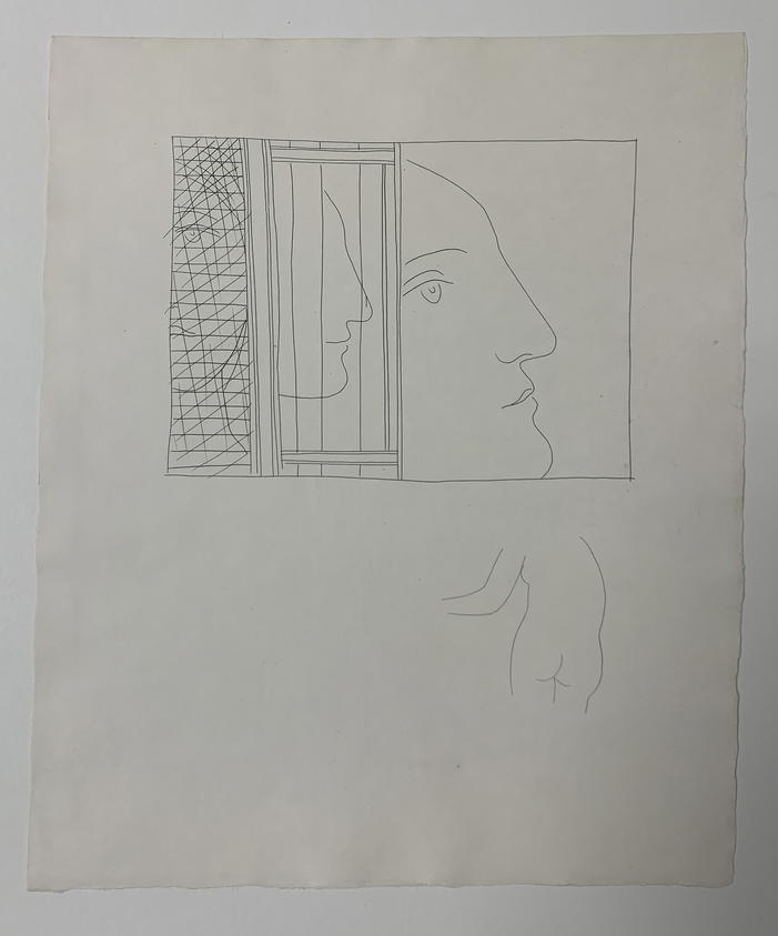 Pablo Picasso (Spanish, 1881–1973). Trois fragments de Têtes, 1931. Etching on Japan paper, laid down on mat board with tape at left edge, Sheet: 12 7/8 x 10 1/8 in. (32.7 x 25.7 cm). Brooklyn Museum, By exchange, 36.915.17. (Photo: Brooklyn Museum)