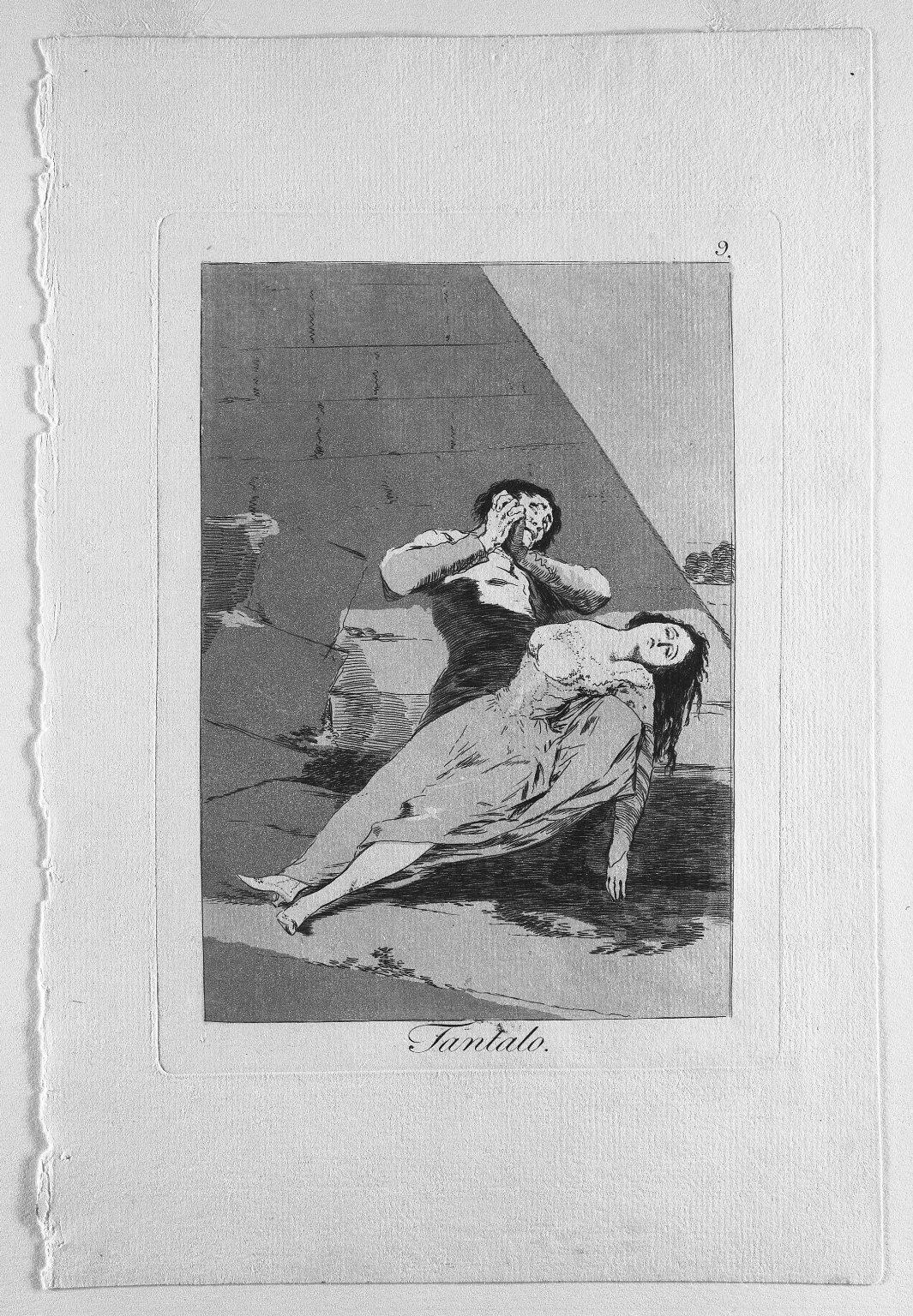 Francisco de Goya y Lucientes (Spanish, 1746–1828). Tantalus (Tantalo), 1797–1798. Etching and aquatint on laid paper, Sheet (Uneven): 11 7/8 x 7 15/16 in. (30.2 x 20.2 cm) Other (Plate): 8 1/4 x 6 15/16 in. (21 x 17.6 cm) Image: 7 1/4 x 5 in. (18.4 x 12.7 cm). Brooklyn Museum, A. Augustus Healy Fund, Frank L. Babbott Fund, and Carll H. de Silver Fund, 37.33.9. (Photo: Brooklyn Museum)