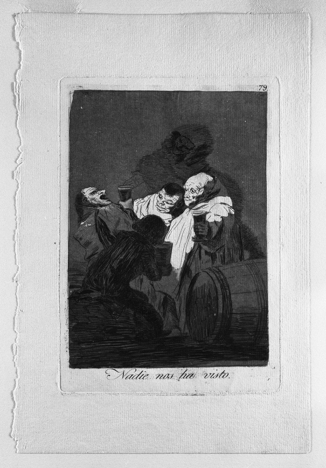 Francisco de Goya y Lucientes (Spanish, 1746–1828). No One Has Seen Us (Nadie nos ha visto), 1797–1798. Etching and aquatint on laid paper, Sheet: 11 7/8 x 8 in. (30.2 x 20.3 cm) Image: 7 7/16 x 5 3/8 in. (18.9 x 13.7 cm). Brooklyn Museum, A. Augustus Healy Fund, Frank L. Babbott Fund, and Carll H. de Silver Fund, 37.33.79. (Photo: Brooklyn Museum)