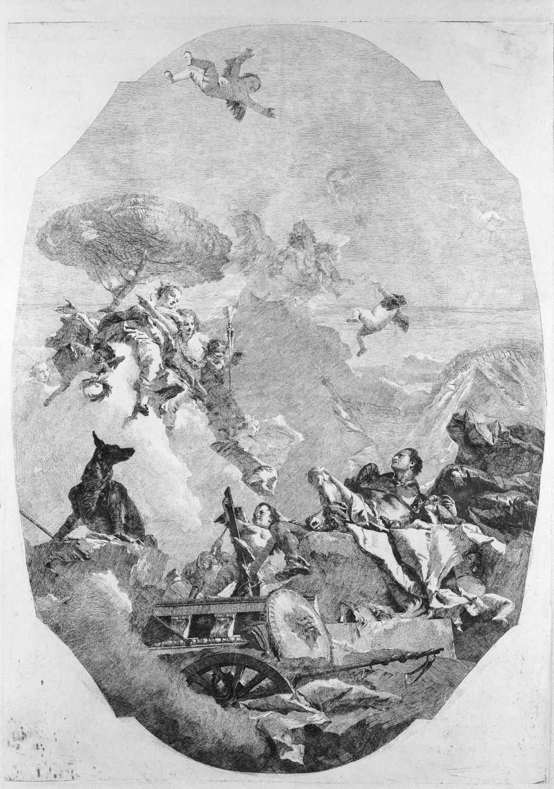 Lorenzo Tiepolo (Italian, 1736–1776). Une Deesse Apparaissant a un Guerrier, Etching on wove paper, Image: 21 7/8 x 15 11/16 in. (55.5 x 39.9 cm). Brooklyn Museum, Museum Collection Fund, 39.13. (Photo: Brooklyn Museum)