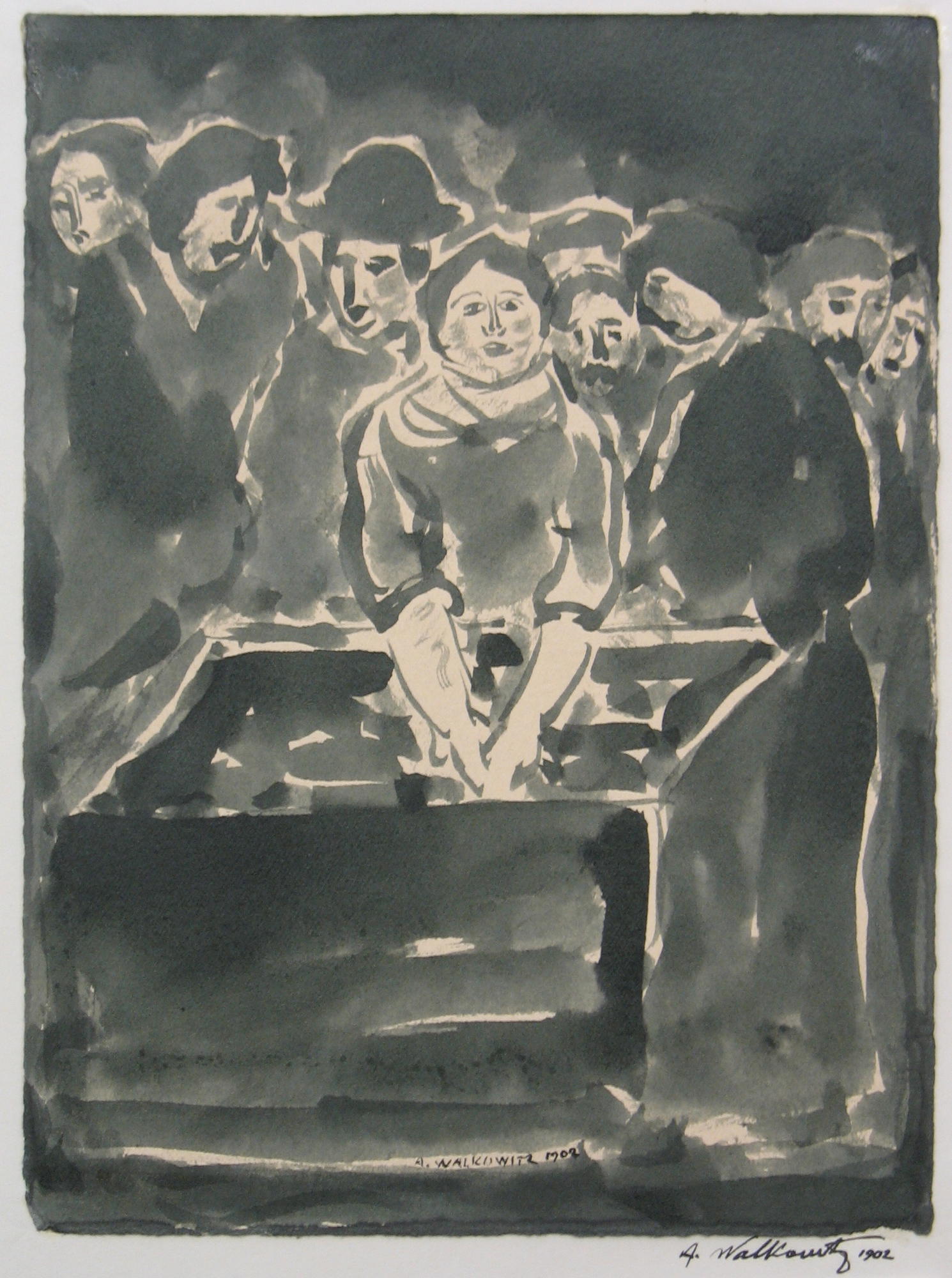 Signed in lower center of drawing in ink: "A. WALKOWITZ 1902" and on mount below lower right of drawing in ink: "A. Walkowitz 1902"