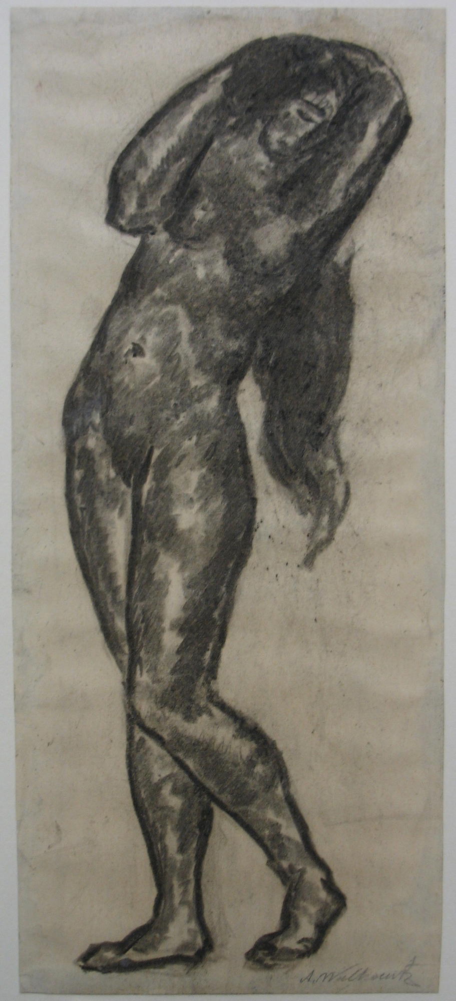 Abraham Walkowitz (American, born Russia, 1878–1965). Nude Figure with Arms Above Head, n.d.. Charcoal on paper, Sheet: 12 1/2 x 5 3/8 in. (31.8 x 13.7 cm). Brooklyn Museum, Gift of the artist, 39.523. (Photo: Brooklyn Museum)