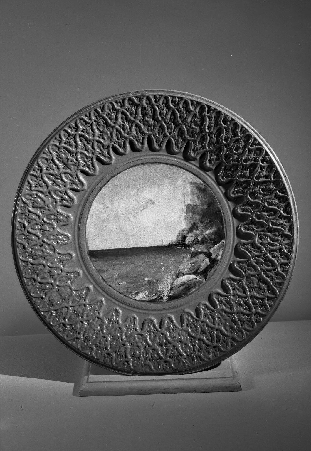 Matt Morgan Art Pottery Company (1882–1884); William Purcell McDonald (possible decorator). Plate, 1884. Earthenware, 16 3/4 in. (42.5 cm). Brooklyn Museum, Gift of Mrs. Julius Reiner, 41.851. (Photo: Brooklyn Museum)