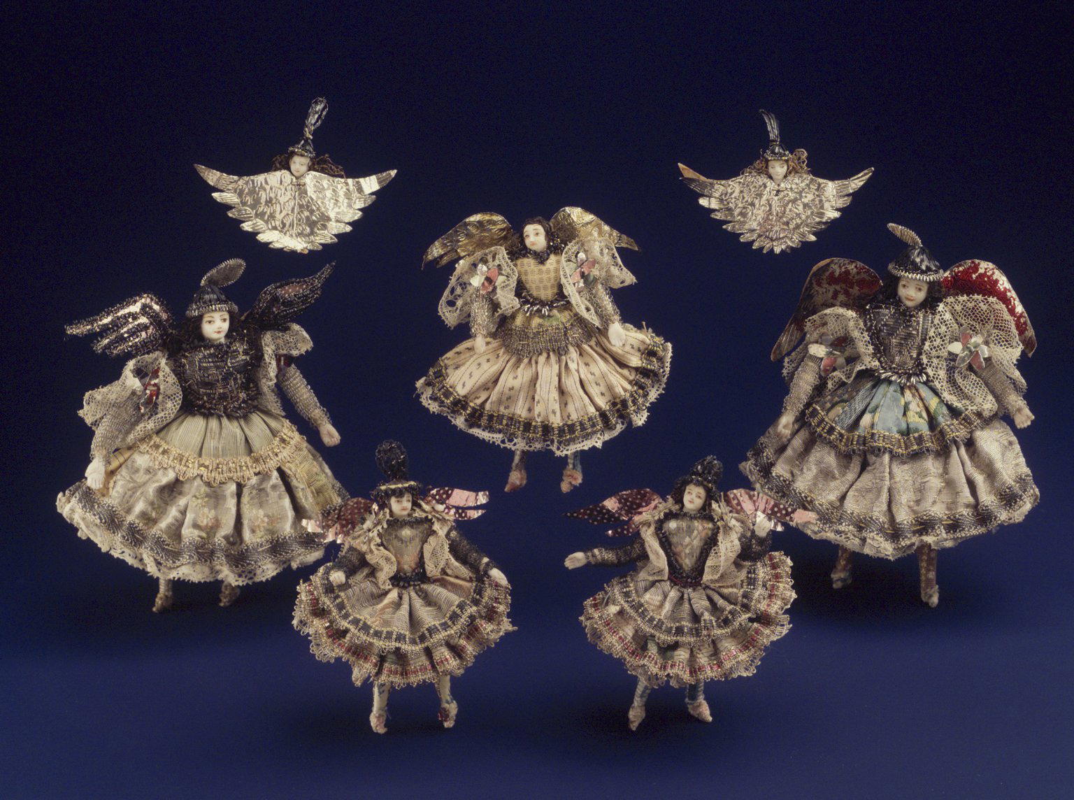 Collection of Briscada Angels and Doll Heads with Wings, Metal: Silver, tinsel, wire, cloth, hair, shell, dimensions of 41.1275.250.1 for Connecting Cultures: 6 × 5 1/4 × 5 in. (15.2 × 13.3 × 12.7 cm) dimensions of 41.1275.250a as catalogued: 5 1/8 in. (13 cm). Brooklyn Museum, Museum Expedition 1941, Frank L. Babbott Fund, 41.1275.250a. (Photo: Brooklyn Museum)