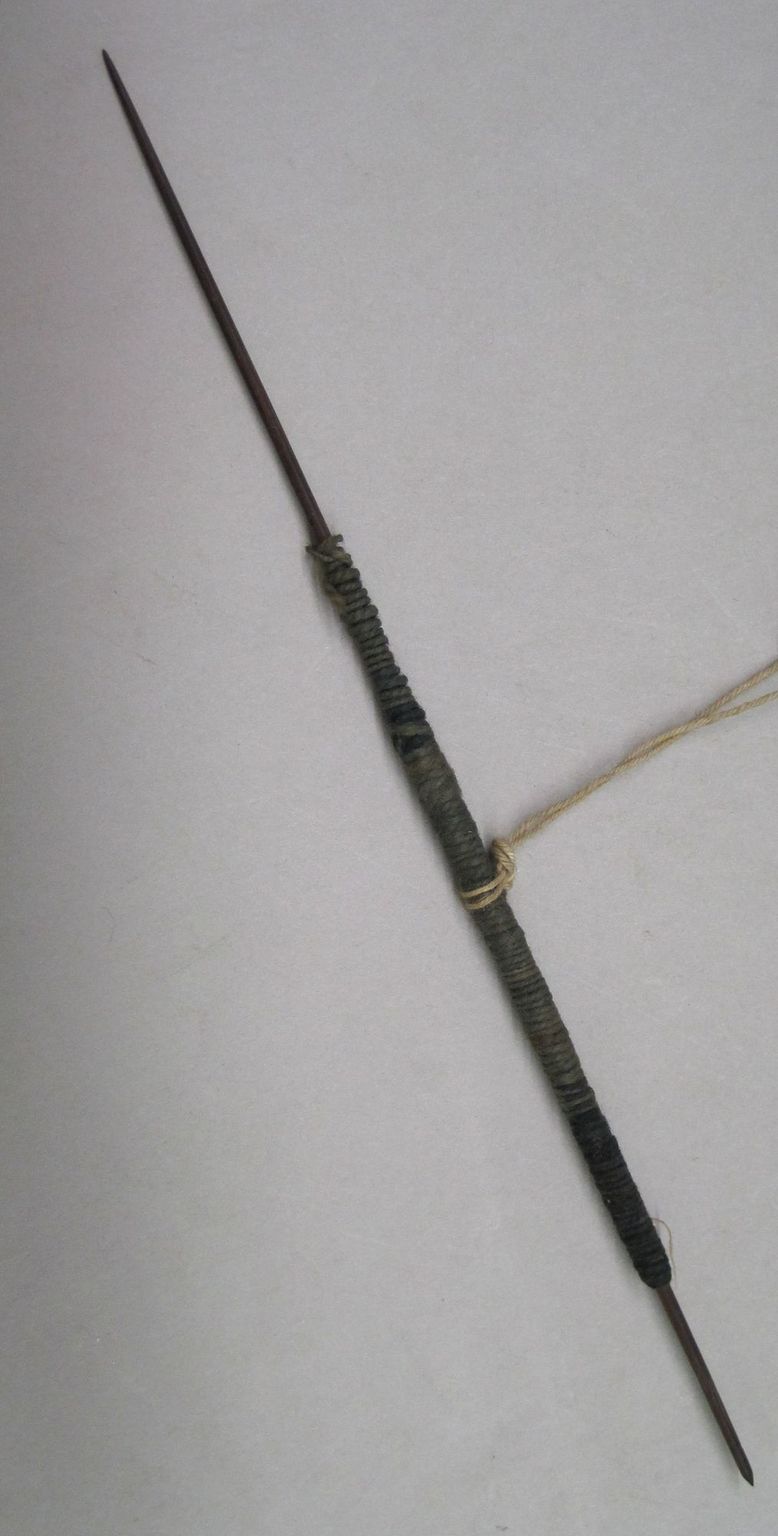 Spindle, Wood, cotton or camelid fiber, 1/8 x 1/8 x 8 5/8 in. (0.3 x 0.3 x 21.9 cm). Brooklyn Museum, Gift of Daniel Berry Austin, 42.26.5.