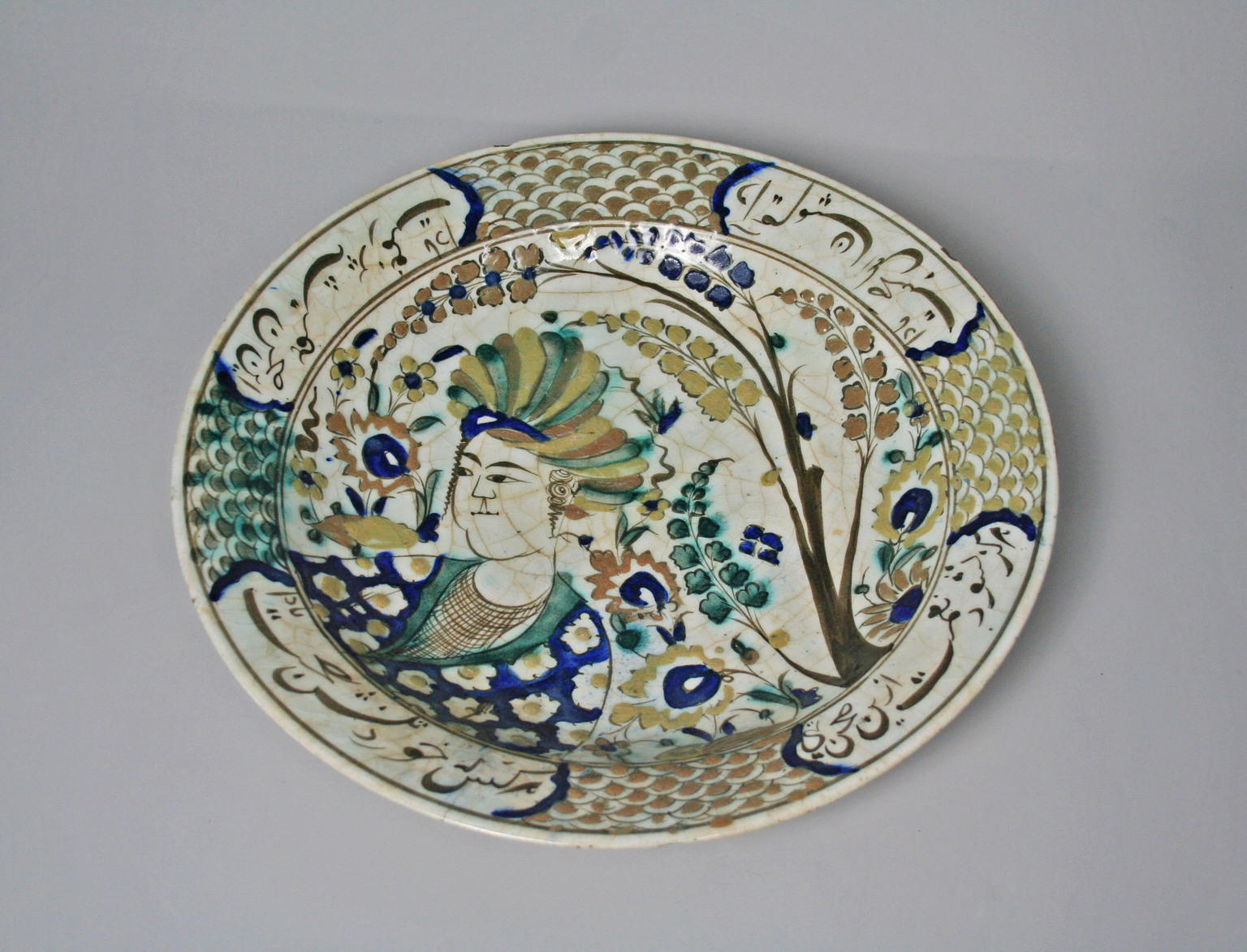 Dish Depicting Turbaned Youth and Persian Poetic Inscriptions