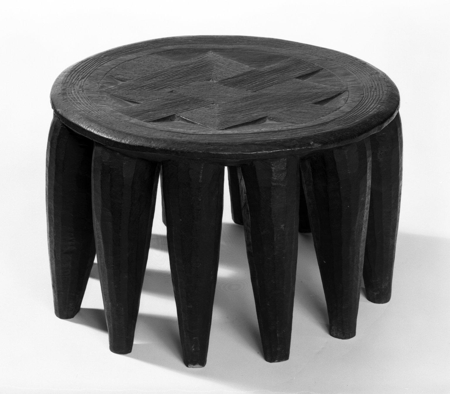 Nupe. Stool, early 20th century. Wood, height: 8 5/8 in. (22.0 cm) diam: 13 in. (33.0 cm). Brooklyn Museum, Gift of Arthur Wiesenberger, 43.177.23. (Photo: Brooklyn Museum)