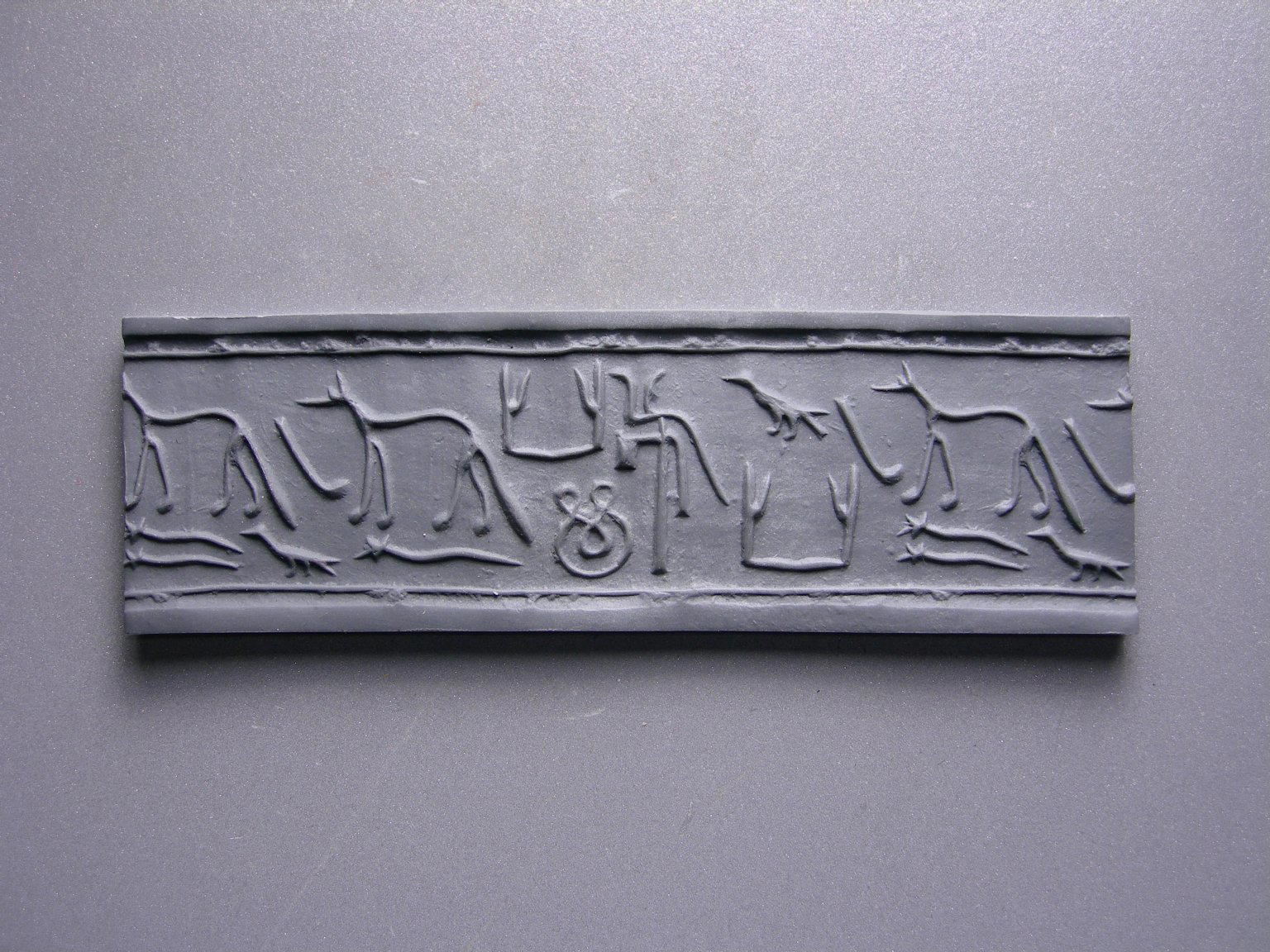Cylinder Seal, ca. 2800–2675 B.C.E.. Steatite, 1 1/8 x 1 in. (2.8 x 2.5 cm). Brooklyn Museum, Charles Edwin Wilbour Fund, 44.123.20. (Photo: Brooklyn Museum)