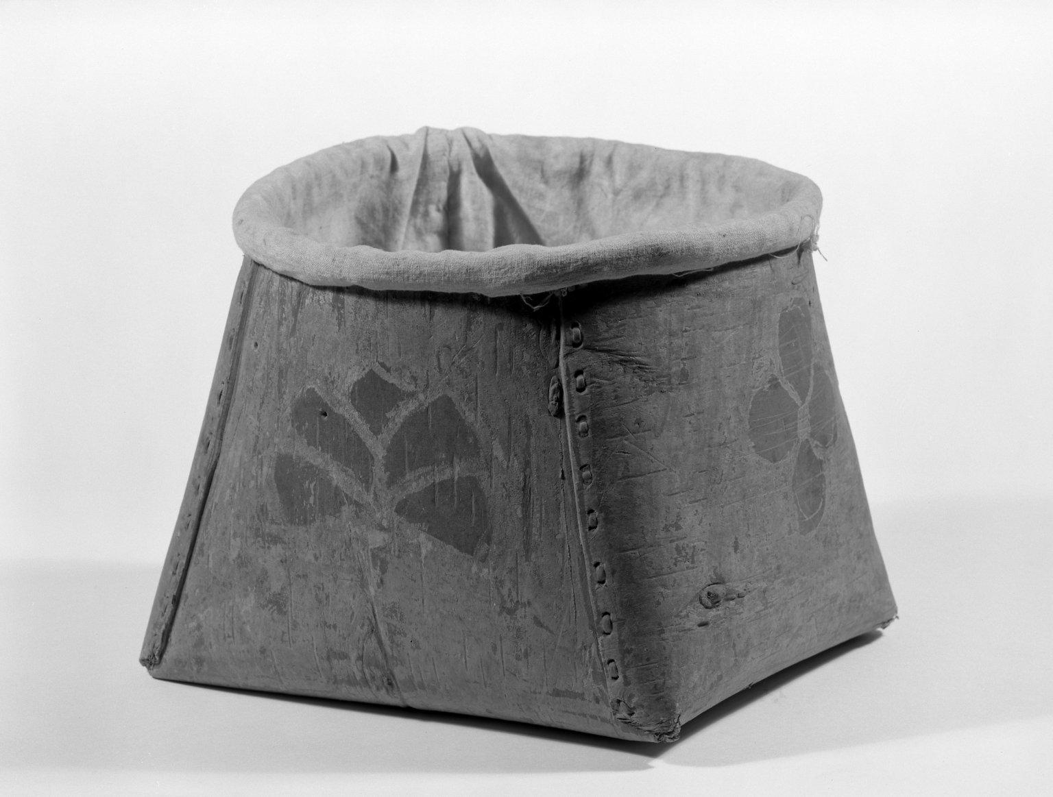 Anishinaabe; or Cree. Bucket with Cloth Top, Birch bark, cloth, sinew, 7 11/16 x 8 1/4 x 9 13/16 in. (19.5 x 21.0 x 25.0 cm). Brooklyn Museum, By exchange, 46.100.25. (Photo: Brooklyn Museum)
