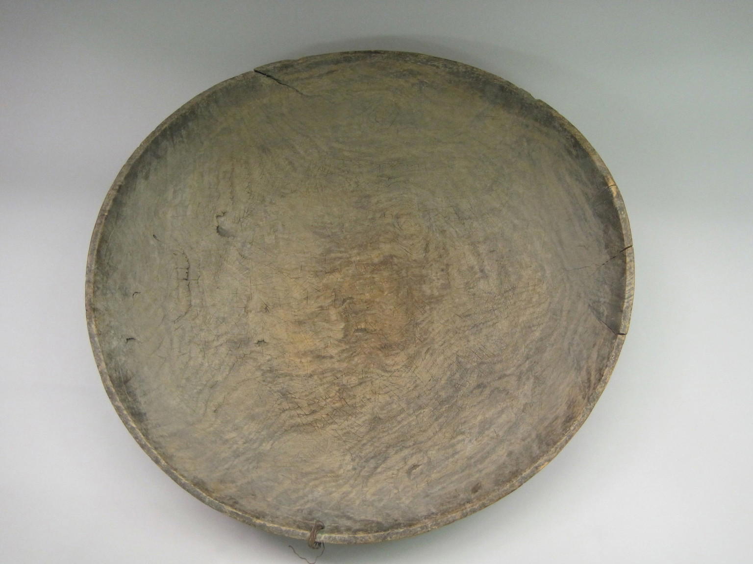 Sault Ste. Marie Tribe of Chippewa Indians (Ojibwe); Anishinaabe. Bowl, Wood, metal, 5 3/4 × 22 1/4 × 22 in. (14.6 × 56.5 × 55.9 cm). Brooklyn Museum, By exchange, 46.100.41. (Photo: Brooklyn Museum)