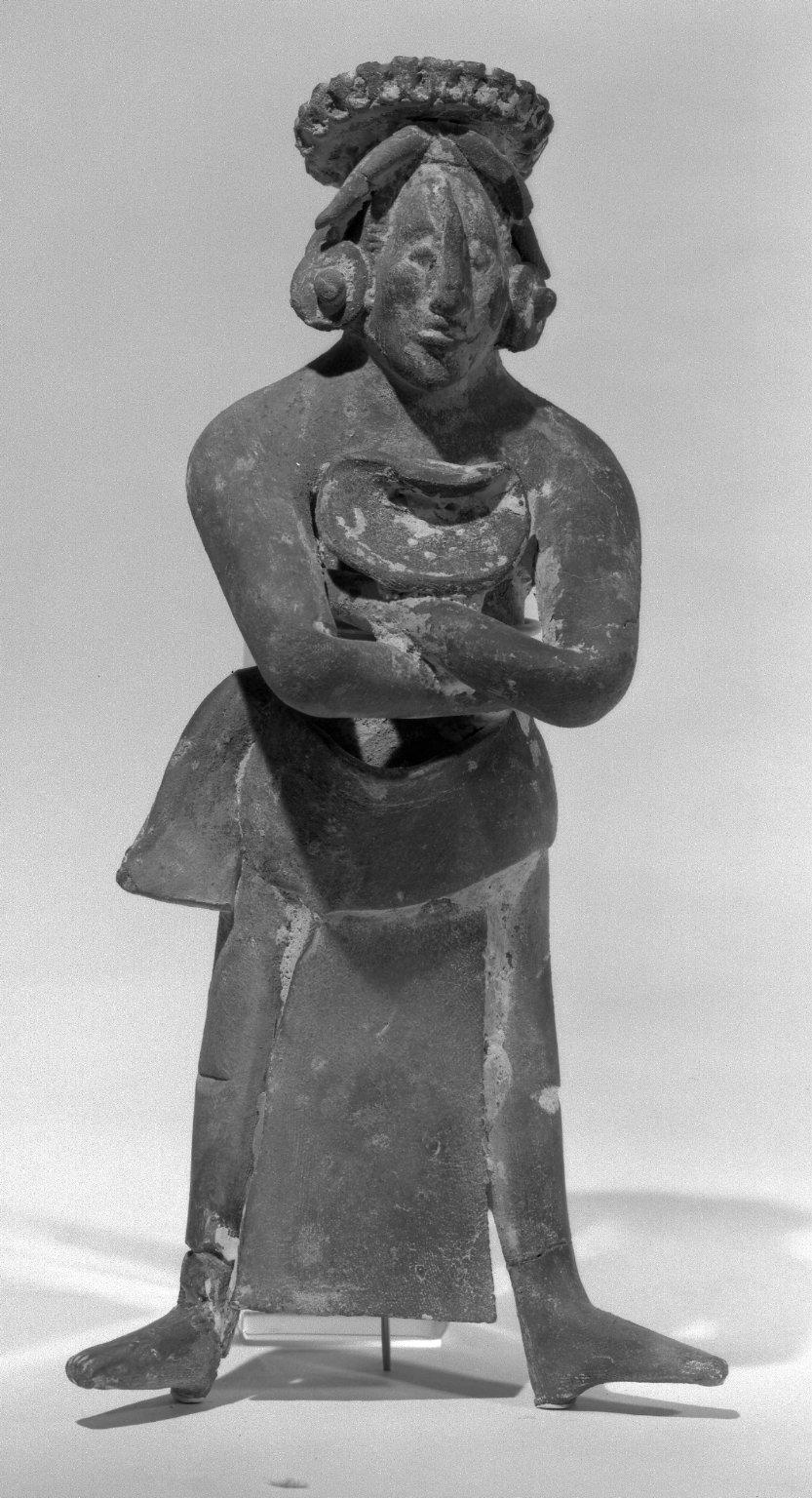 Maya. Standing Figurine, Clay, 7 3/16 x 3 7/16 x 1 15/16 in. (18.3 x 8.7 x 5 cm). Brooklyn Museum, Carll H. de Silver Fund, 47.117.2. (Photo: Brooklyn Museum)