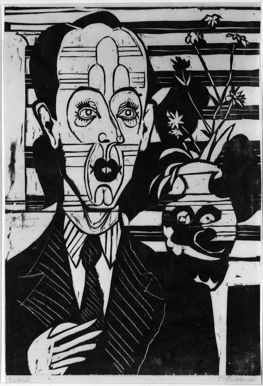 Ernst Ludwig Kirchner (German, 1880–1938). Portrait of Dr. Huggler (Bildnis Dr. Huggler), 1935. Woodcut on thin laid paper, Image: 19 1/2 x 13 3/4 in. (49.5 x 34.9 cm) Sheet: 23 1/8 x 13 3/4 in. (58.7 x 34.9 cm). Brooklyn Museum, Charles Stewart Smith Memorial Fund, 48.135.3. (Photo: Brooklyn Museum)