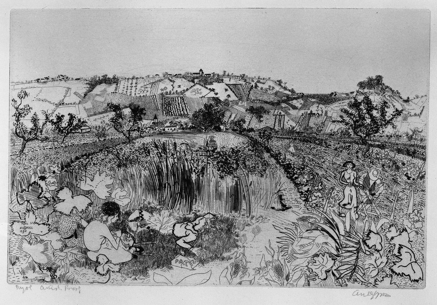 Anthony Gross (British, 1905–1984). Pujol, 1930–1939. Etching and engraving on wove paper, 7 5/8 x 11 9/16 in. (19.3 x 29.4 cm). Brooklyn Museum, A. Augustus Healy Fund, 53.168.35. © Estate of Anthony Gross. (Photo: Brooklyn Museum)
