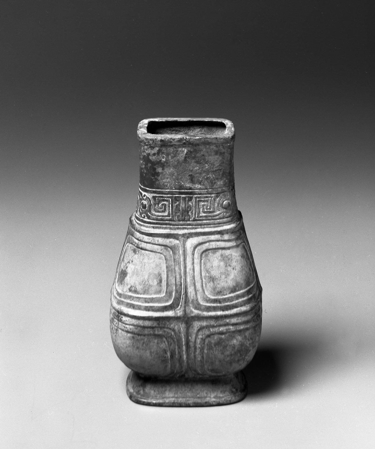 Ritual Jar (Hu), 1027–221 B.C.E.. Bronze, 7 11/16 x 3 1/8 x 4 1/4 in. (19.6 x 8 x 10.8 cm). Brooklyn Museum, Gift of David James in memory of his brother, William James, 54.10.13. (Photo: Brooklyn Museum)