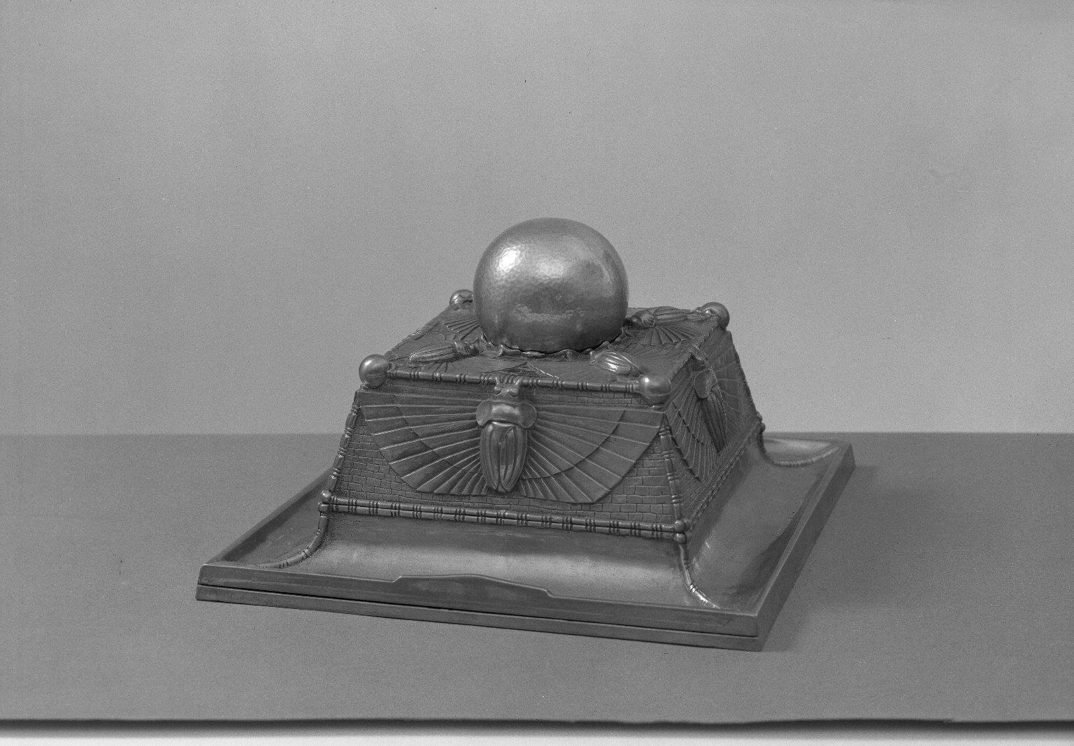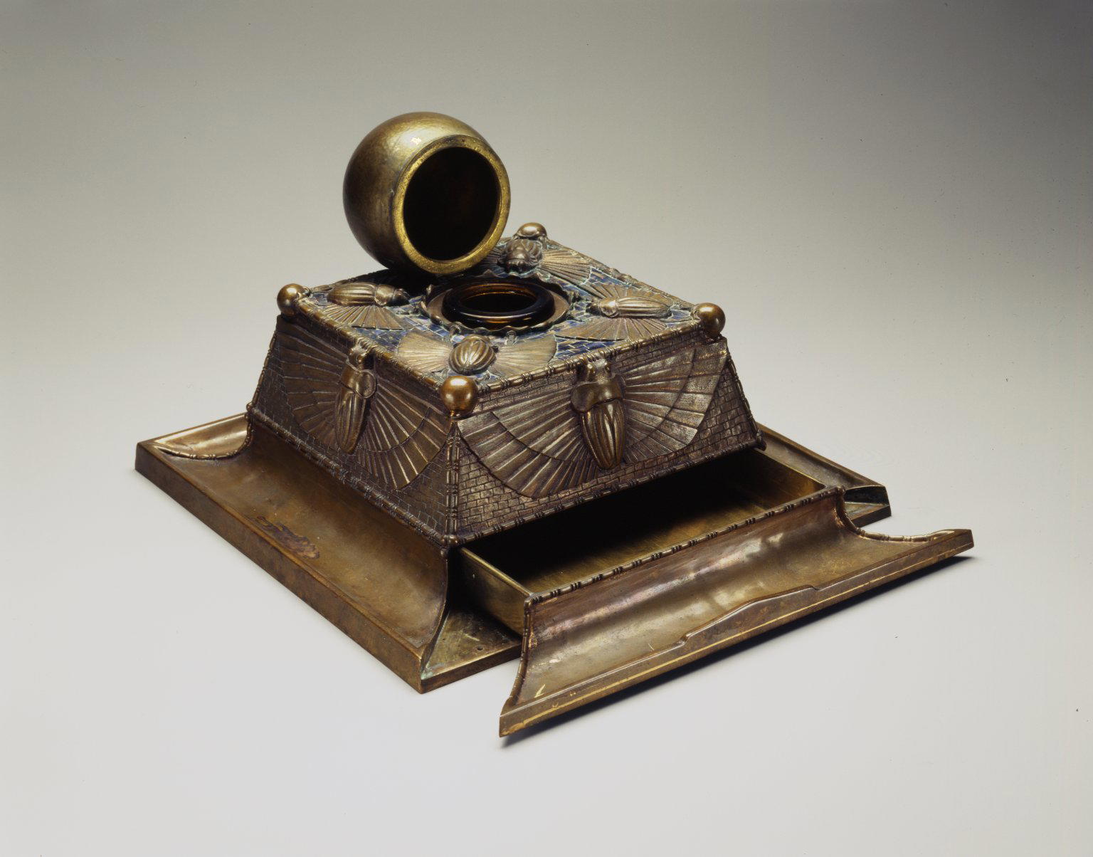 Louis Comfort Tiffany (American, 1848–1933). Inkwell, ca. 1900. Bronze, brass, glass, 5 1/2 x 9 1/4 x 9 1/4 in. (14 x 23.5 x 23.5 cm). Brooklyn Museum, Museum Collection Fund, 59.83a-c. (Photo: Brooklyn Museum)