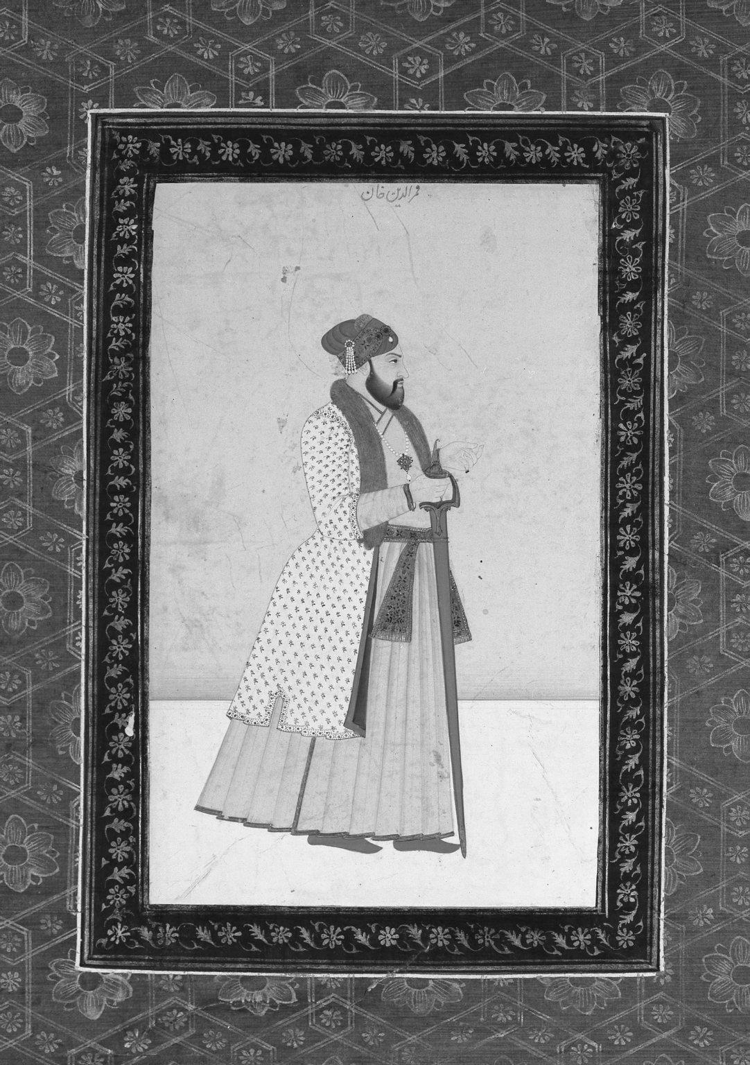 Inscriptions: "Qamar al-Din Khan" in Persian in gold at top of page