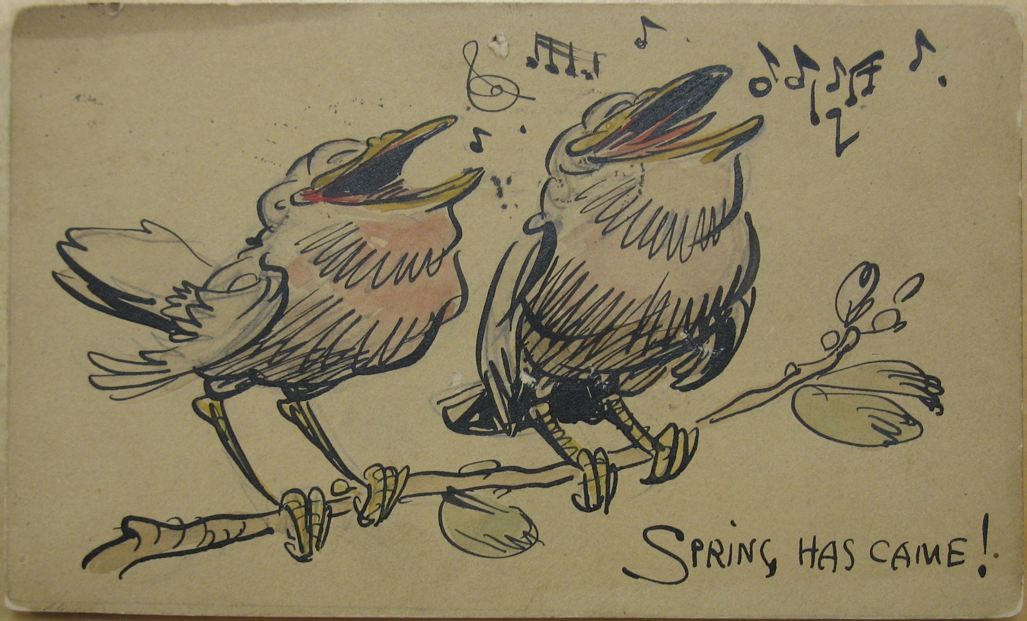 Walt Kuhn (American, 1877–1949). 1 of a Set of 6 Postcards: Spring Has Came, May 1908. Pen, ink, and watercolor over graphite on cardstock, Sheet: 3 3/8 x 5 9/16 in. (8.6 x 14.1 cm). Brooklyn Museum, Gift of Brenda Kuhn, 62.32.4. © Estate of Walt Kuhn. (Photo: Brooklyn Museum)