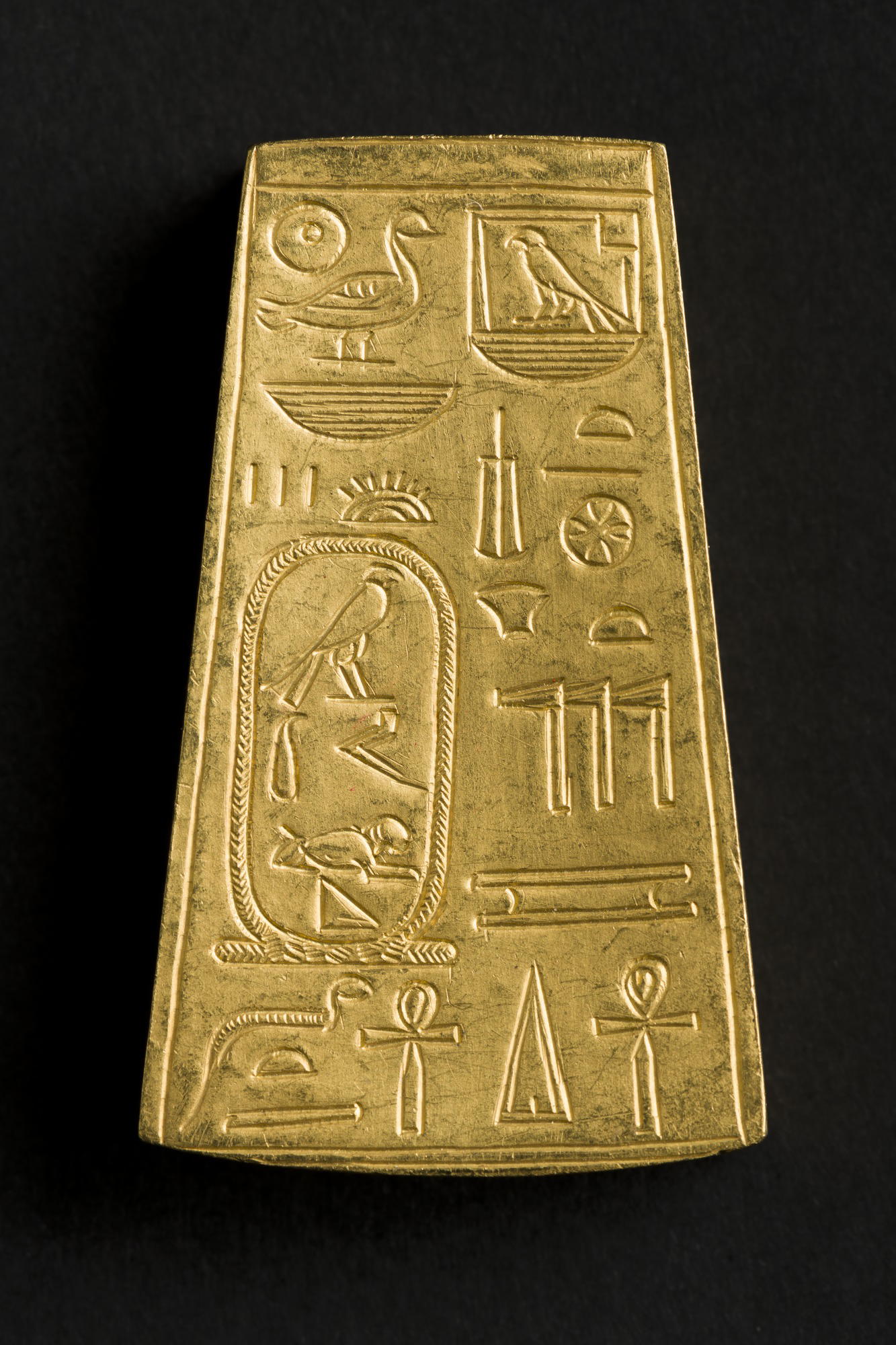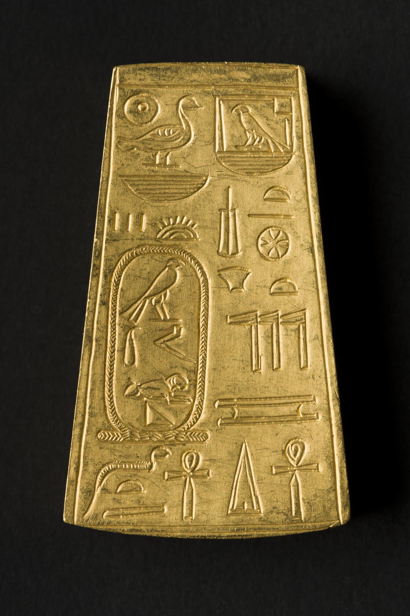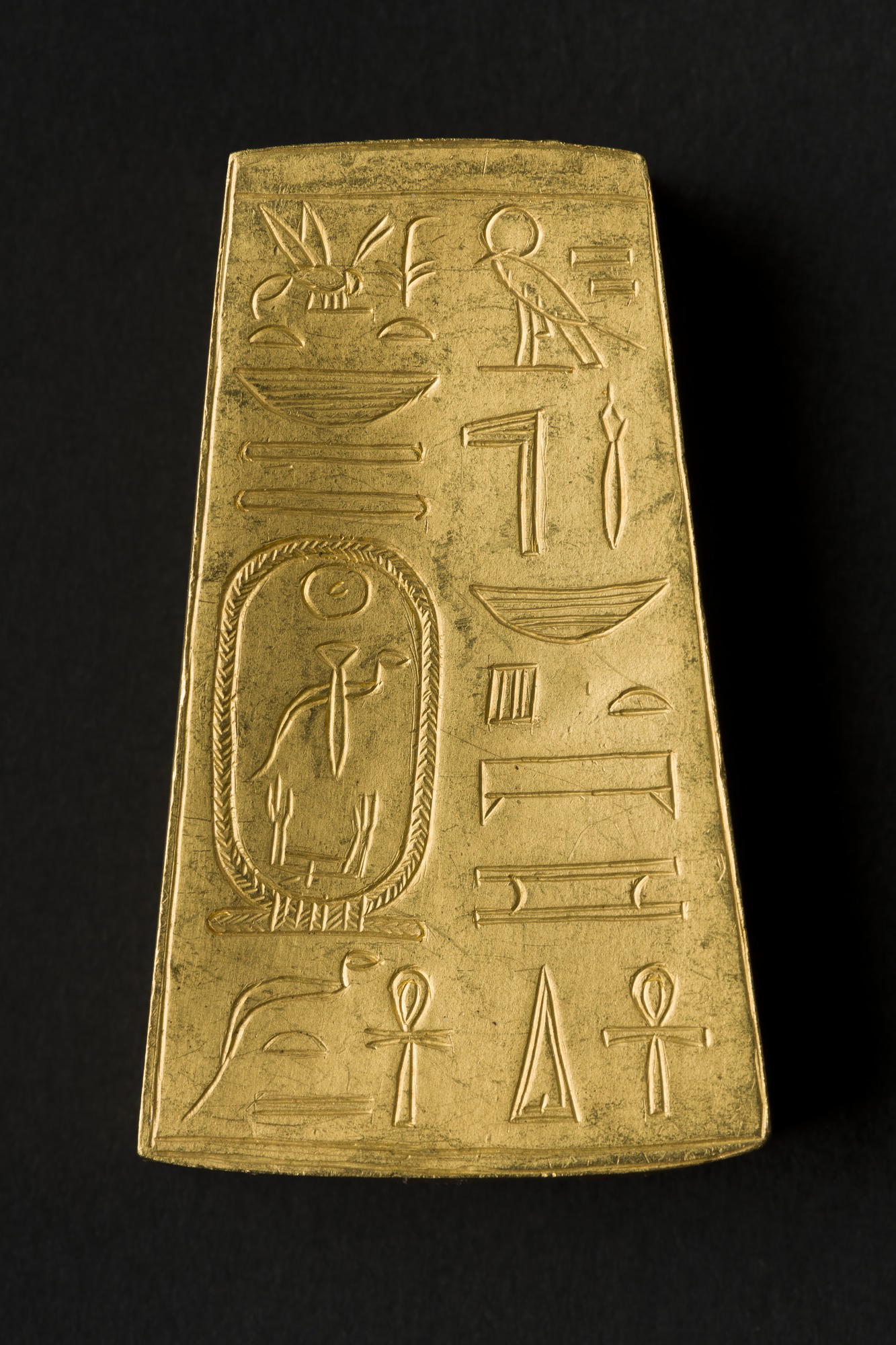 Copy of Spacer Bead (modern), 1911 C.E.. Gold, 1 7/8 x 1 1/16 x 3/8 in. (4.7 x 2.7 x 0.9 cm) Weight: 21.1 g (0.02kg). Brooklyn Museum, Charles Edwin Wilbour Fund , 63.35.1. (Photo: Brooklyn Museum)