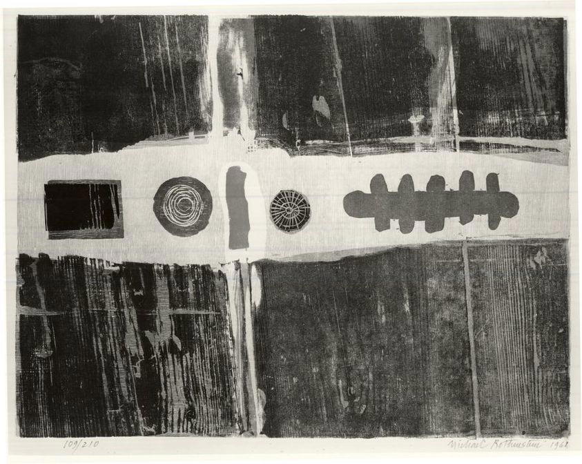 Michael Rothenstein (British, 1908–1993). Black Bar, Woodcut in color on laid paper, 32 1/8 x 22 3/4 in. (81.6 x 57.8 cm). Brooklyn Museum, Caroline A.L. Pratt Fund, 63.157.3. (Photo: Brooklyn Museum)