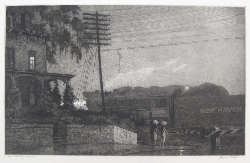 Martin Lewis (American, born Australia, 1881–1962). Passing Freight Train, 1934. Etching on paper, sheet: 12 1/2 x 17 7/8 in. (31.8 x 45.4 cm) image: 9 x 14 5/16 in. (22.9 x 36.4 cm). Brooklyn Museum, Gift of Mrs. Dudley Nichols in memory of her husband, 63.204.3. (Photo: Brooklyn Museum)