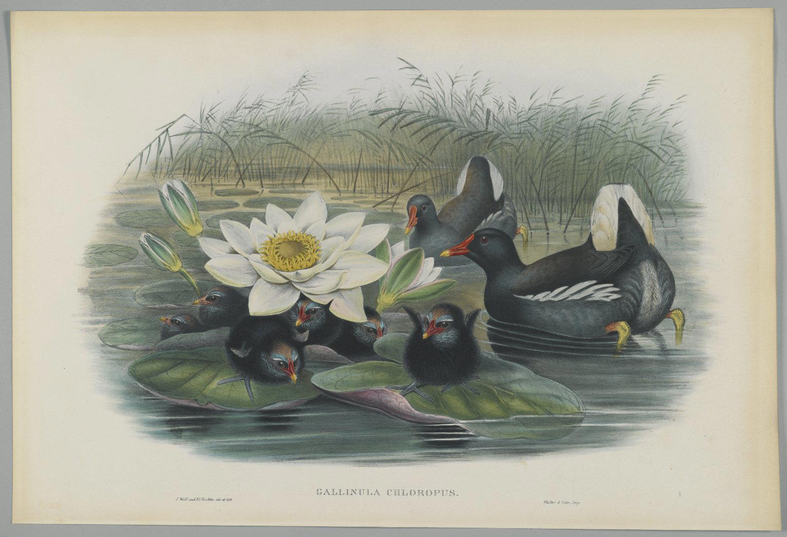 John Gould (British, 1804–1881). Gallinula Choropus, Lithograph on wove paper, Sheet: 21 1/4 x 14 1/2 in. (54 x 36.8 cm). Brooklyn Museum, Gift of the Estate of Emily Winthrop Miles, 64.98.130. (Photo: Brooklyn Museum)