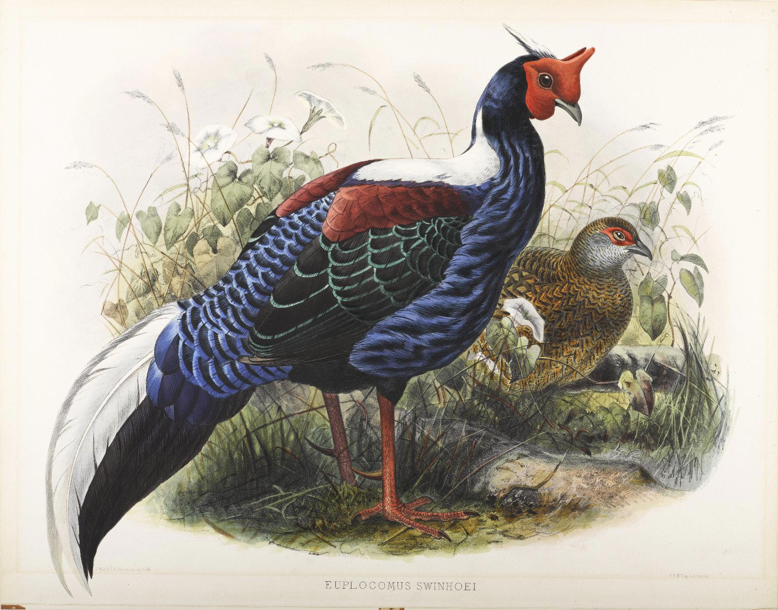 John Gould (British, 1804–1881). Euplocomus Swinhoei: Pheasant, Lithograph on wove paper, Sheet: 23 3/8 x 18 7/16 in. (59.4 x 46.8 cm). Brooklyn Museum, Gift of the Estate of Emily Winthrop Miles, 64.98.170. (Photo: Brooklyn Museum)