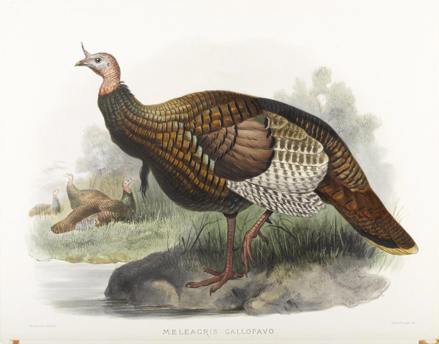 John Gould (British, 1804–1881). Meleagris Gallopavo: Wild Turkey, Lithograph on wove paper, 23 3/8 x 18 3/8 in. (59.4 x 46.7 cm). Brooklyn Museum, Gift of the Estate of Emily Winthrop Miles, 64.98.194. (Photo: Brooklyn Museum)