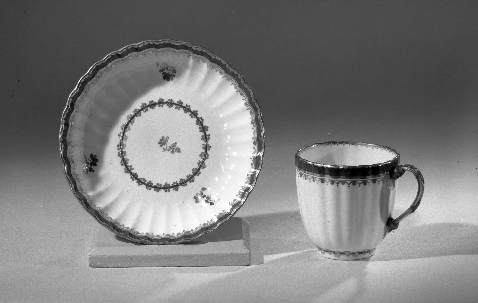 Coffee Cups and Saucers, One of Set, ca. 1795–1796. Soft-paste Porcelain, cup: 2 1/2 x 2 5/8 in. (6.4 x 6.7 cm) Saucer: 1 1/4 x 5 1/4 in. (3.2 x 13.3 cm). Brooklyn Museum, Anonymous gift, 64.241.46. (Photo: Brooklyn Museum)