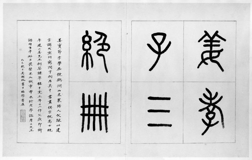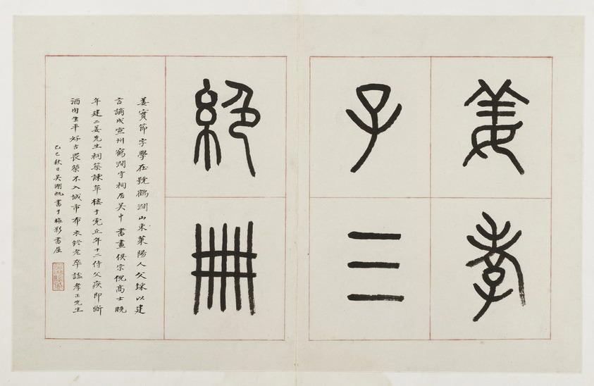 Wu Hufan (Chinese, 1894–1970). Title Page for the Album of Three Perfections, 20th century. Ink on folded double page, 11 x 17 1/2 in. (27.9 x 44.5 cm). Brooklyn Museum, Gift of Dr. and Mrs. Frederick Baekeland, 66.188.4. (Photo: Brooklyn Museum)