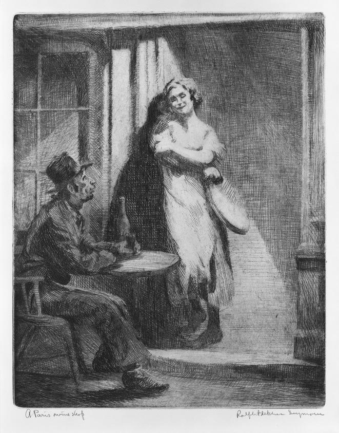 Ralph Fletcher Seymour. Paris Wine Shop, ca. 1940. Etching on paper, image: 10 x 8 in. (25.4 x 20.3 cm). Brooklyn Museum, Gift of Mrs. Harold J. Baily, 67.27.2. (Photo: Brooklyn Museum)